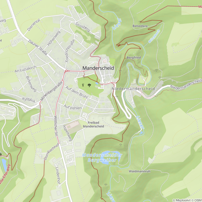 Maar ook de kastelen van Manderscheid, en dus de bezienswaardigheid Manderscheid, mag je niet missen. Er loopt ook een wandelroute over de onderste en bovenste burcht, die je kunt afsluiten met koffie en gebak in het gezellige kasteelcafé bij de onderste burcht. Het kleine stadscentrum nodigt uit tot wandelen en dromen. Met verschillende cafés en restaurants kun je je hier prima vermaken. Op warme zomerdagen zorgt het openluchtzwembad op 3 minuten loopafstand voor een frisse afkoeling. Wil je echter dat echte Eifelgevoel, rijd dan naar een van de vier zwemmogelijkheden om een dagje lekker te zwemmen.