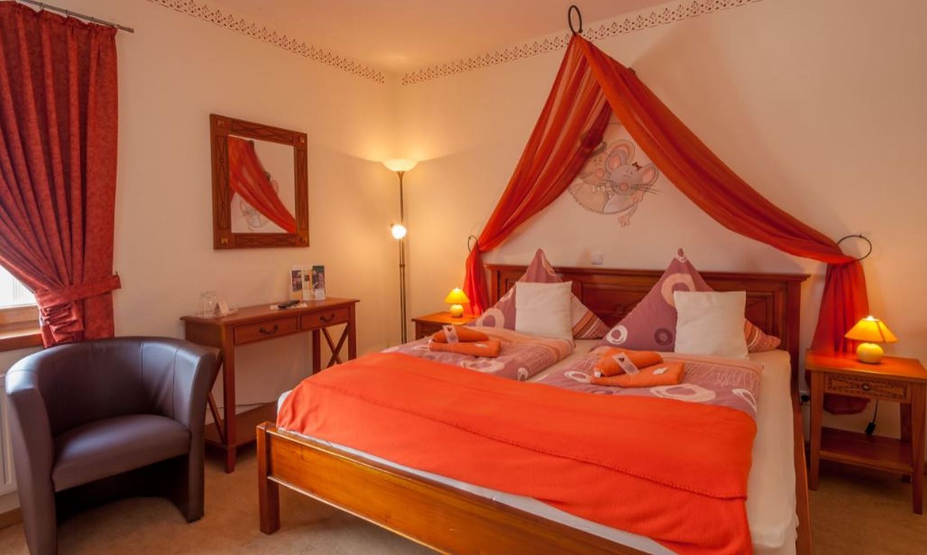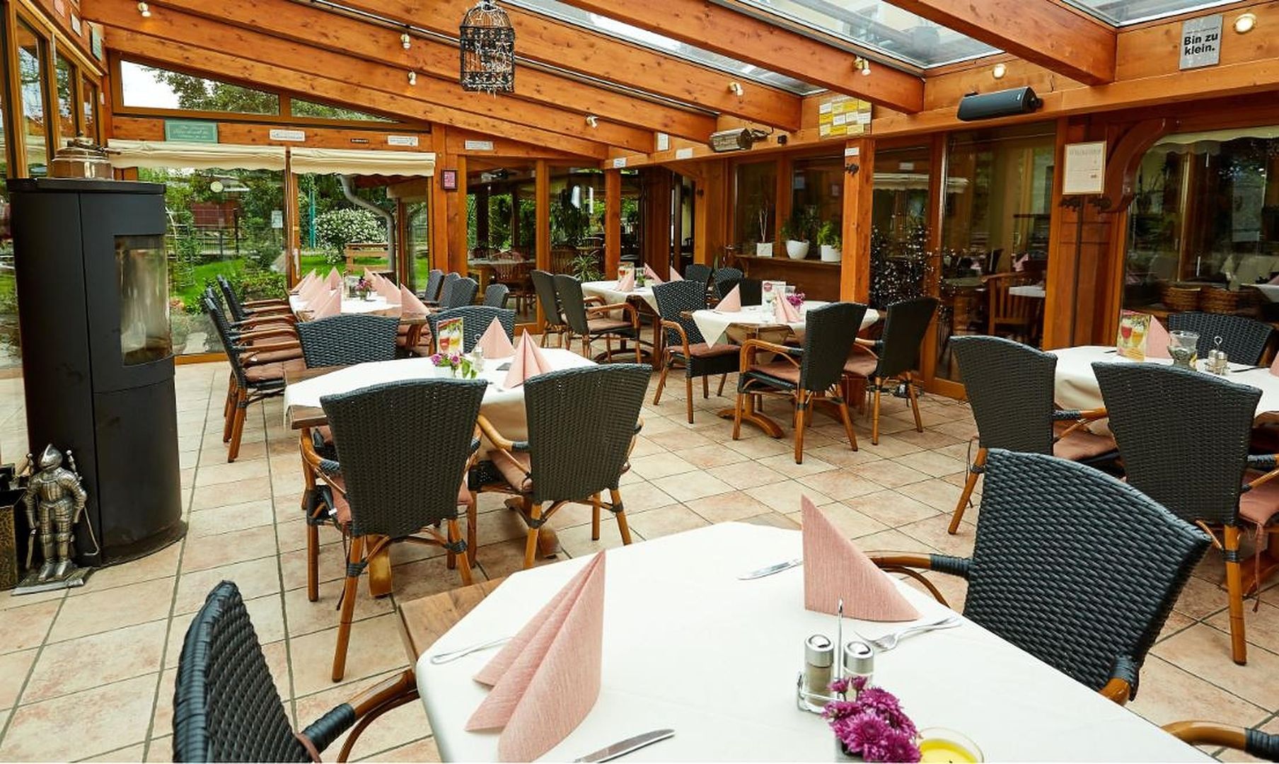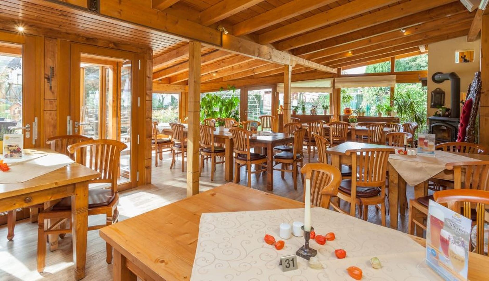 -Eten en drinken mogelijk in het aangesloten café-restaurant 'Mausefalle' met ruim 100 zitplaatsen