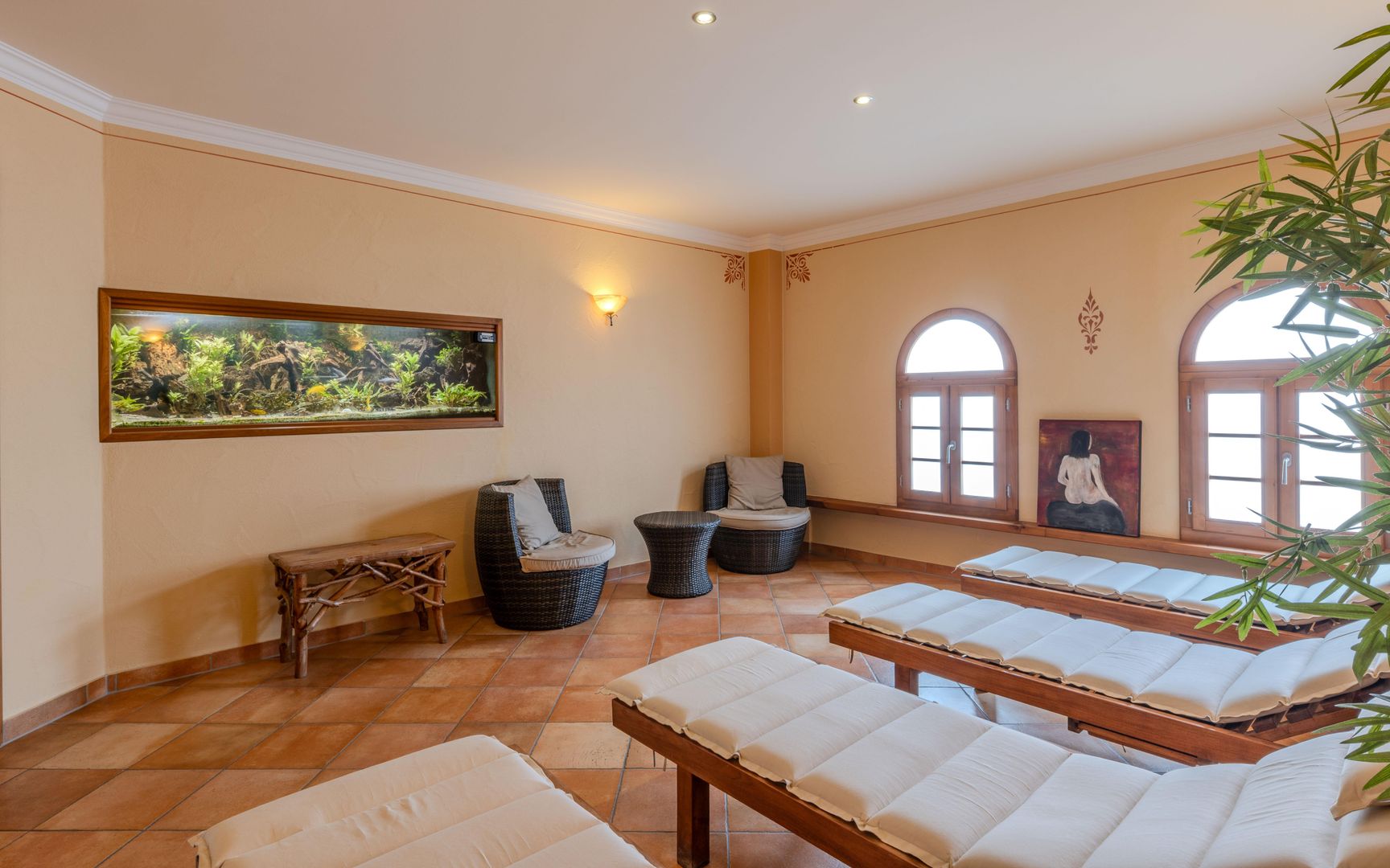 -Wellnessbereik met zoutgrot, salionarium, sauna, stoombad en massage in het belendende gebouw van de 'Zoutgrot Vulkaaneifel'