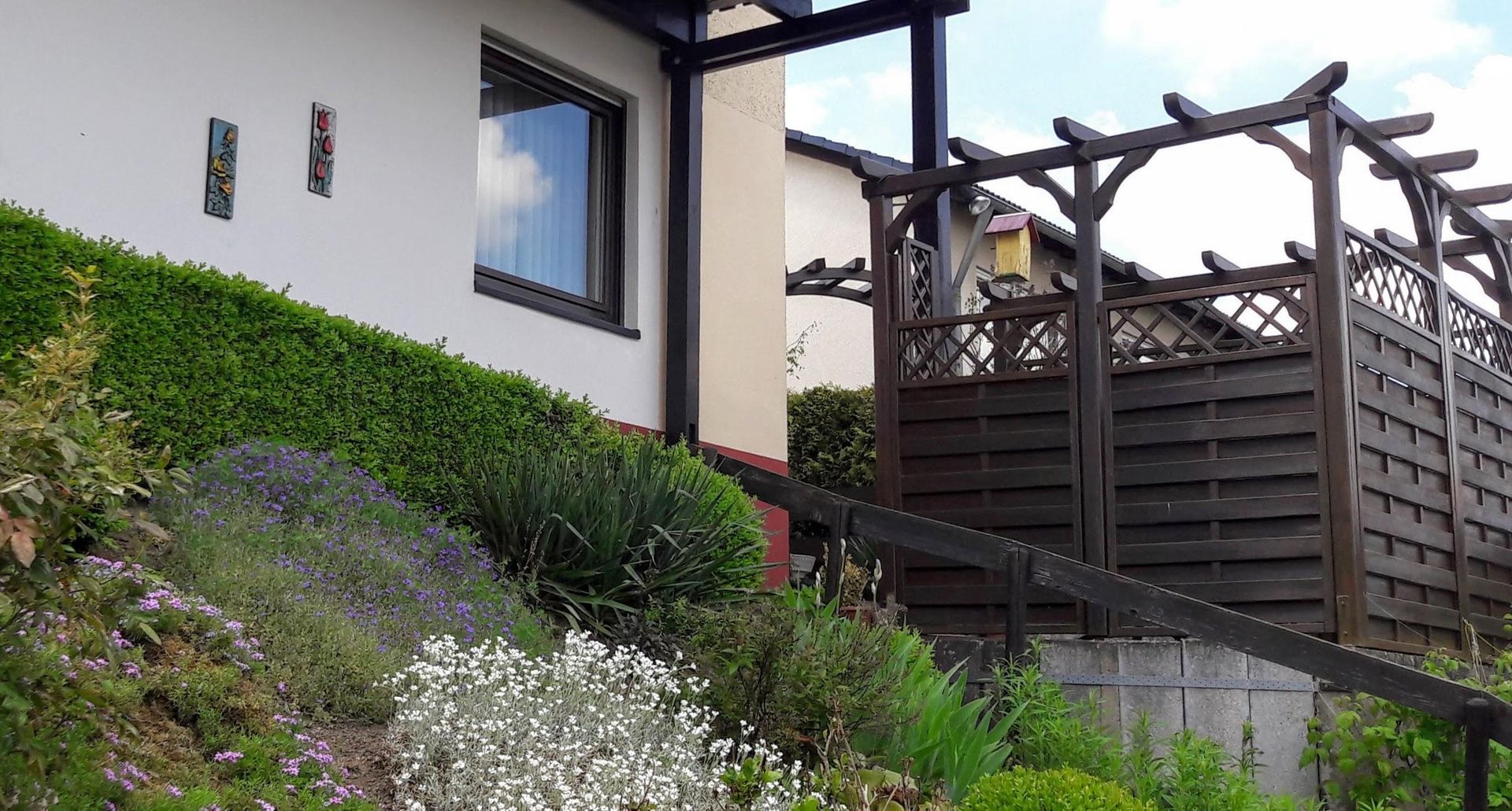 Gezellige niet-rokers vakantiewoning in een eengezinshuis, aparte ingang, idyllisch gelegen. Bos- en wandelpaden, maren, tennisbaan en Maren-Moezel-fietspad in de directe omgeving. Mooie woonruimte met keukenblok, tweepersoonskamer met douche/WC, ligbad. Bijkeuken, parkeerplaats voor auto en fietsen.