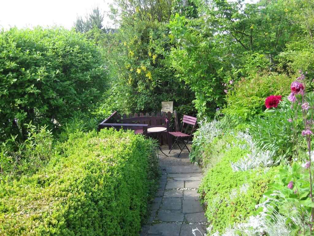 terras met tuinmeubelen, grote tuin met verschillende zitmogelijkheden