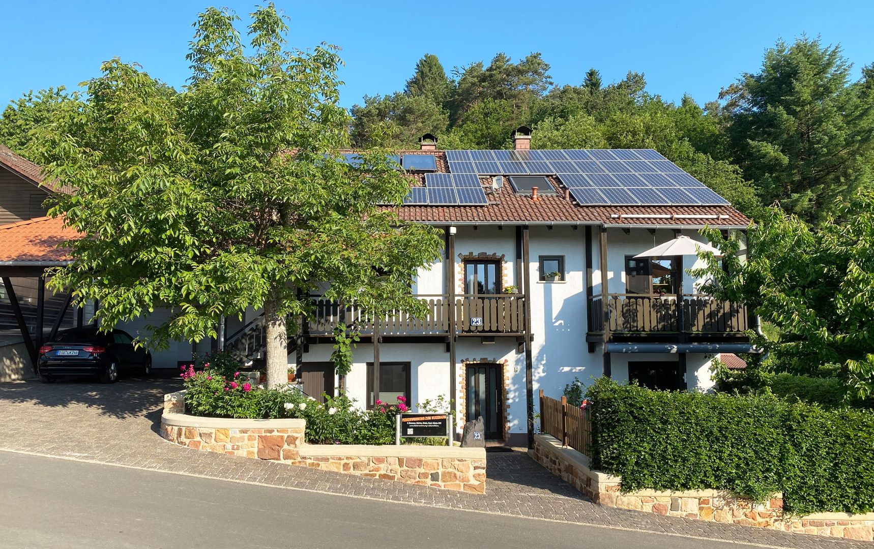 Onze mooie walnotenboom zorgt in de zomer voor schaduw op het terras.