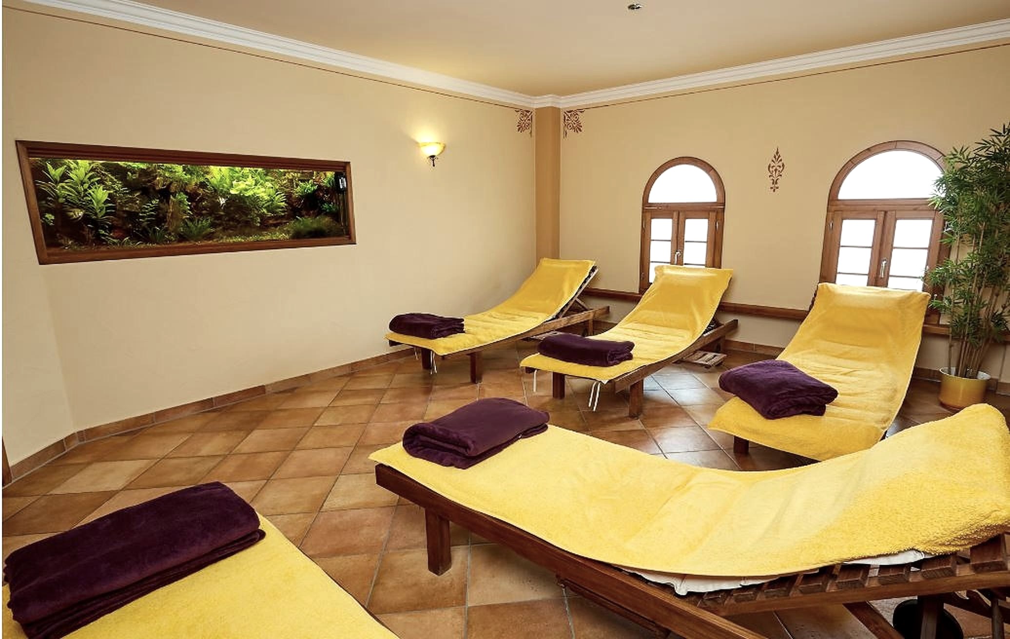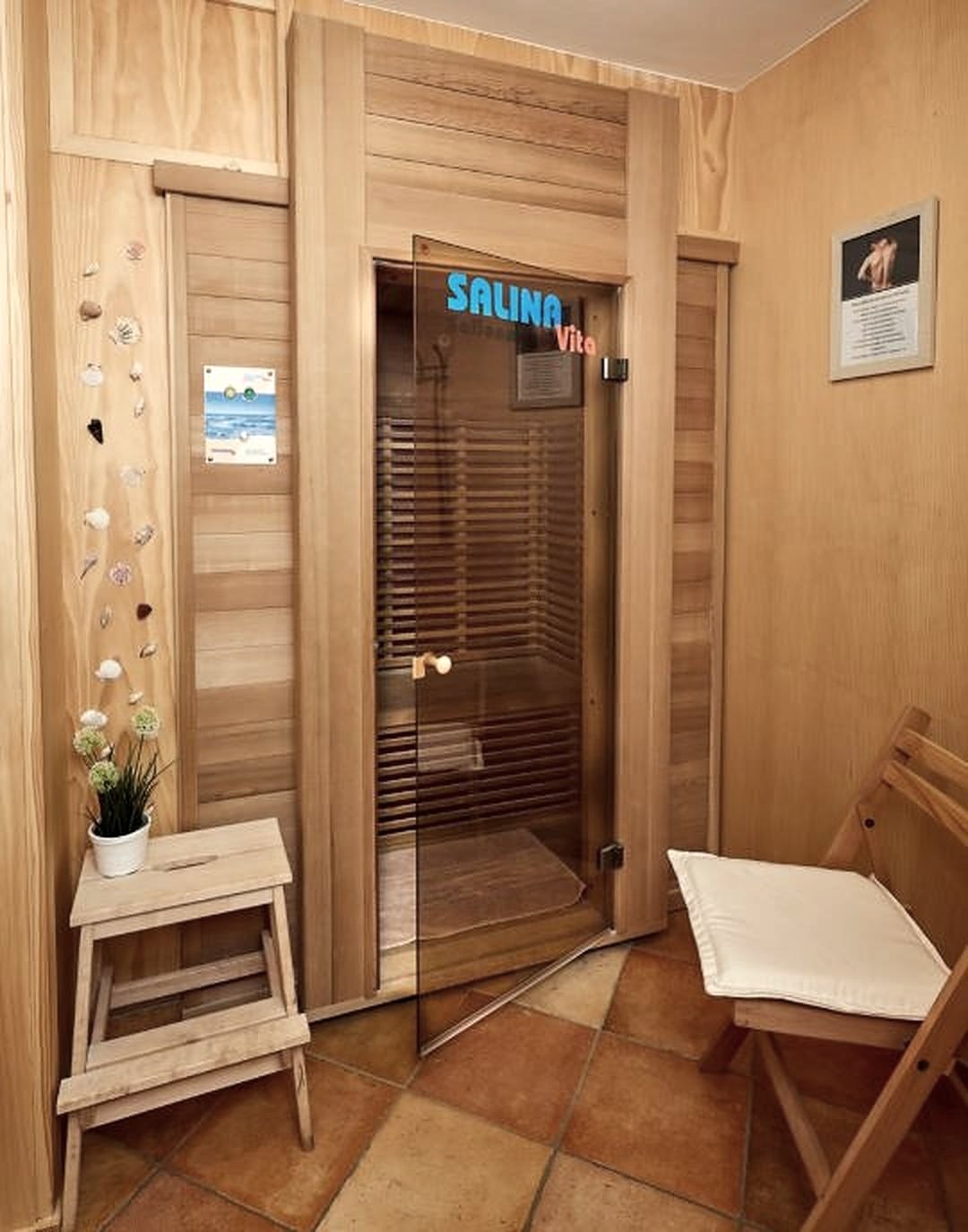 -Wellnessbereik met zoutgrot, salionarium, sauna, stoombad en massage in het belendende gebouw van de 'Zoutgrot Vulkaaneifel'