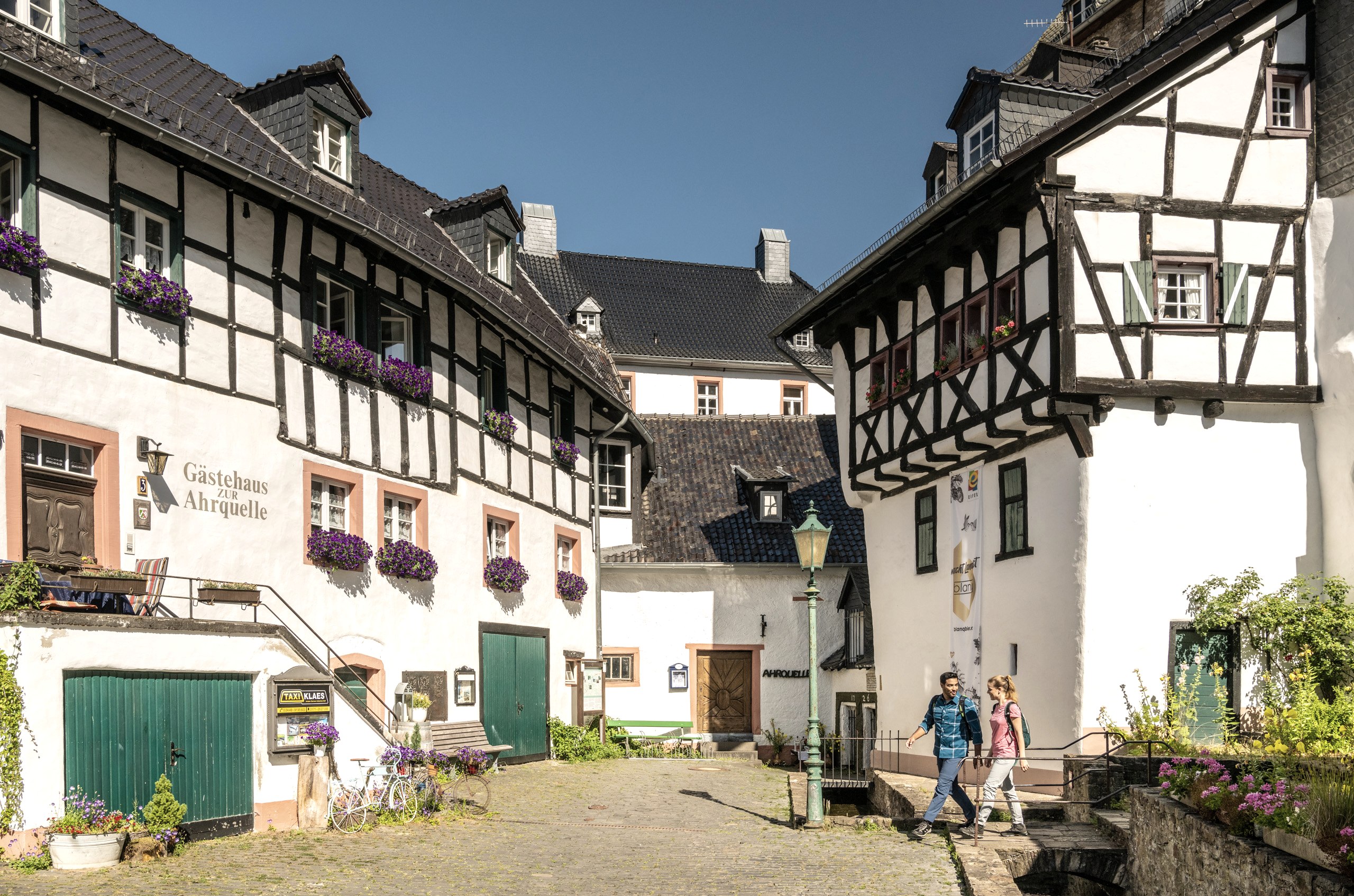 Die besten Ideen entstehen in Bewegung. Was für Dich gilt, scheint auch das Wasser hier dazu bewogen zu haben, auf dem Eifelsteig zwischen Blankenheim und Gerolstein seine gesamte Kreativität zu entfalten. Staunend stehst Du an der Quelle der Ahr. Du siehst richtig – sie entspringt im Keller eines alten Fachwerkhauses mitten in Blankenheim.