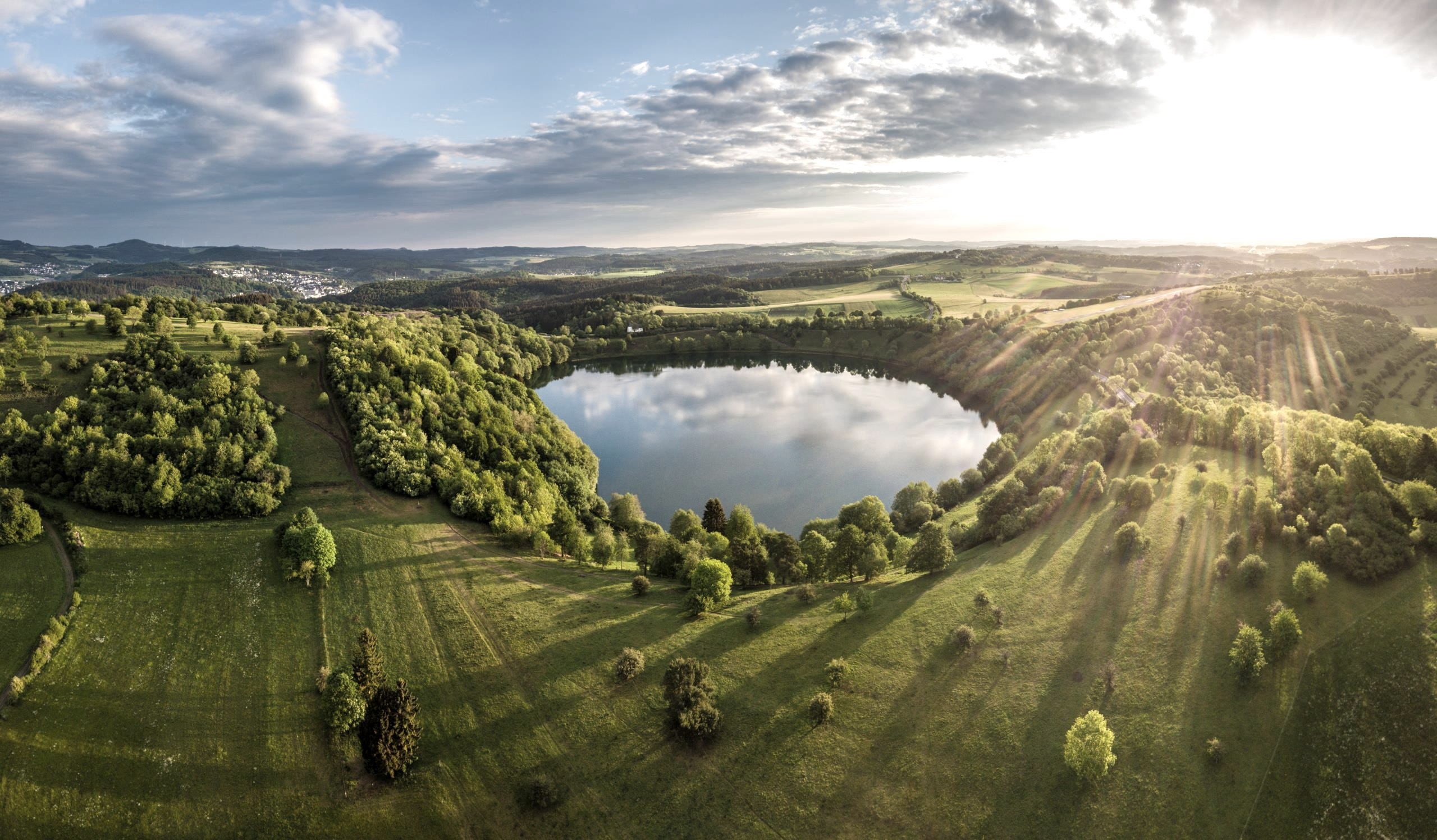 A propos Wasser: Einige Kilometer weiter verzaubern Dich die wassergefüllten Maare bei Daun als tiefblaue “Augen der Eifel”, wie die berühmte Dichterin Clara Viebig sie nannte. Das waldgesäumte Gemündener Maar, das geheimnisvolle Weinfelder Maar (auch Totenmaar genannt) und das Schalkenmehrener Maar in seinem weitläufigen, sonnenverwöhntem Rund.
