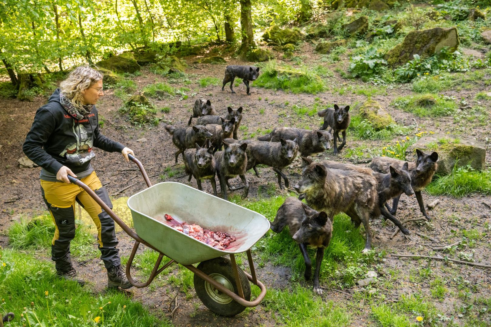 Wolfsfütterung: täglich um 11:45 und 15:45 Uhr, montags beginnt die Wolfsfütterung bereits um 15:00 Uhr!