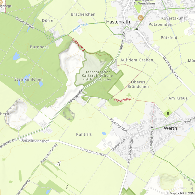In diesem Bereich befand sich die Erzwäsche,-aufbereitung und die Abraumhalde des ursprünglichen Teils der Albertsgrube (Gänge I-VIl und Eisensteinschacht). Die im Südosten befindliche schlauchartige