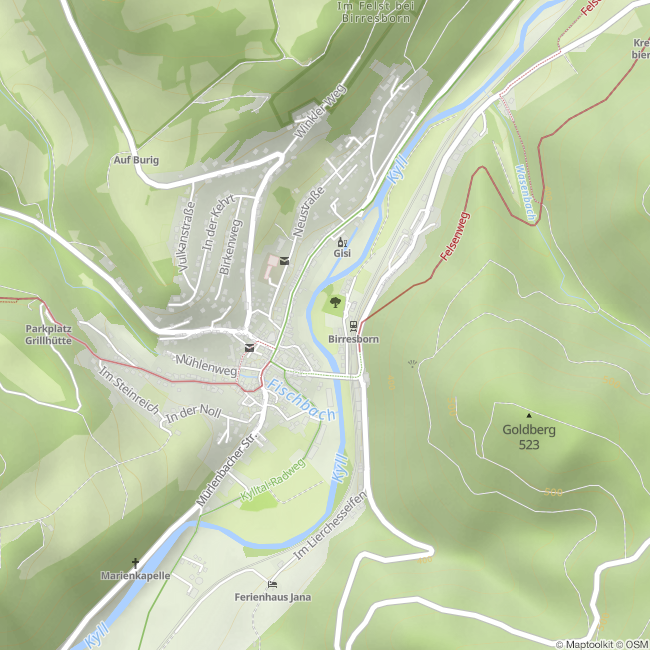 Ein facettenreiches Angelgebiet mit mehreren Schwierigkeitsgraden. Streckenweise hat man beim Werfen genug Raum, an anderen Stellen der Kyll sind Fliegenfischer aber voll gefordert, denn hier hängen Zweige oder ein zugewachsenes Ufer schirmt die Fische ab. In der Kyll findet man neben Äsche, Bachforelle, Döbel und Hecht auch den Weißfisch.