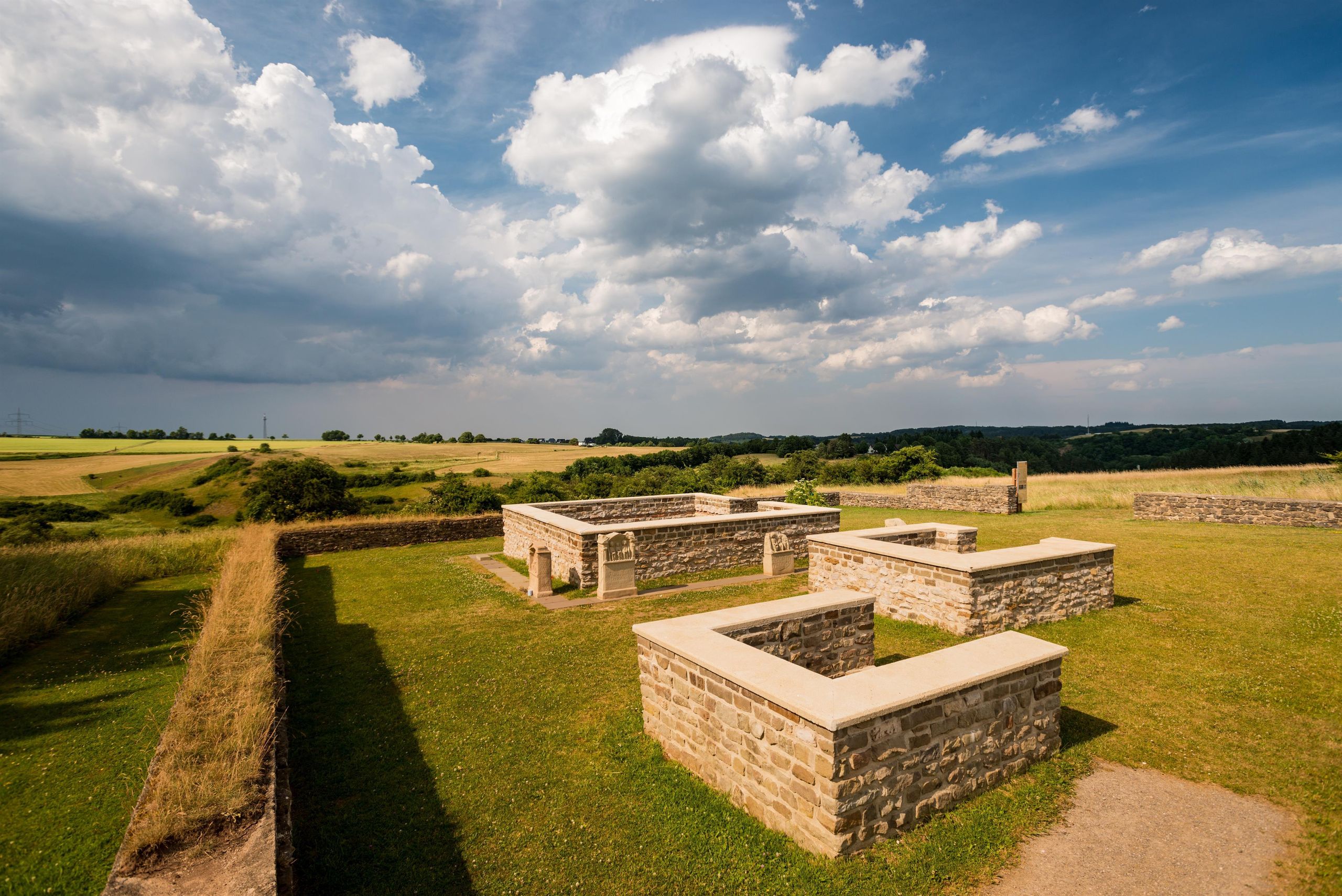 Früher eine Siedlung an der wichtigen Römerstraße Trier-Köln, heute ein beschaulicher Ort für Kultur- und Landschaftsgenuss: Die Reste von Marcomagus finden Sie im Archäologischen Landschaftspark der Eifelgemeinde Nettersheim. Zu sehen sind Teile der ursprünglichen Straßenführung, Wohn- und Geschäftshäuser, eine Befestigungsanlage sowie das Matronenheiligtum „Görresburg". Erschlossen wird der Landschaftspark über einen 4,5 km Rundweg, der am Naturzentrum startet. An bestimmten Terminen können Sie sich sogar in einem Römischen Reisewagen herumkutschieren lassen. Oder lieben Sie Kriminalfälle? Dann nehmen Sie doch für unterwegs den Mitmach-Krimi „Der Frevel auf dem Tempelberg“ mit, der im Naturzentrum verkauft wird. Dort sollten Sie sich ohnehin eine Ausstellung mit original römischen Grabungsfunden ansehen.