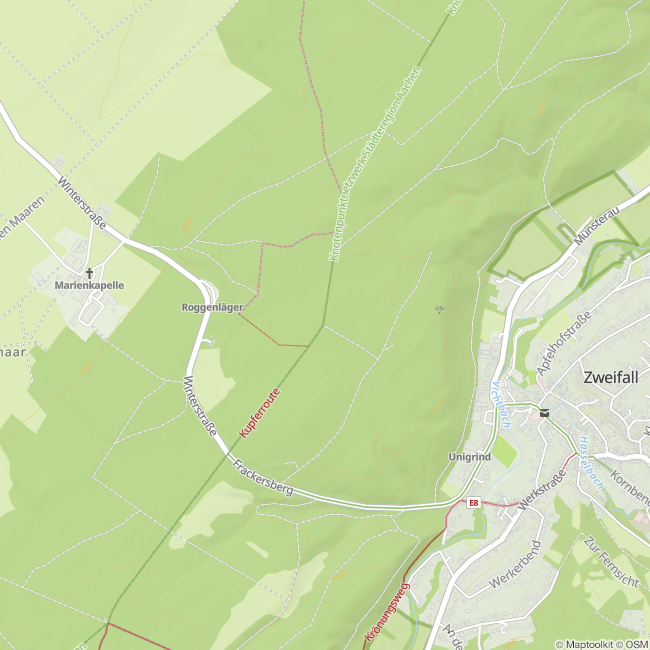 So führte der Kirchweg nicht nach Zweifall oder Monschau, sondern weiter nach Stolberg. Der Blick über das Tal zeigt, wie nah sich die Gemeinden räumlich waren – und wie klar sie dennoch von einander getrennt lebten.