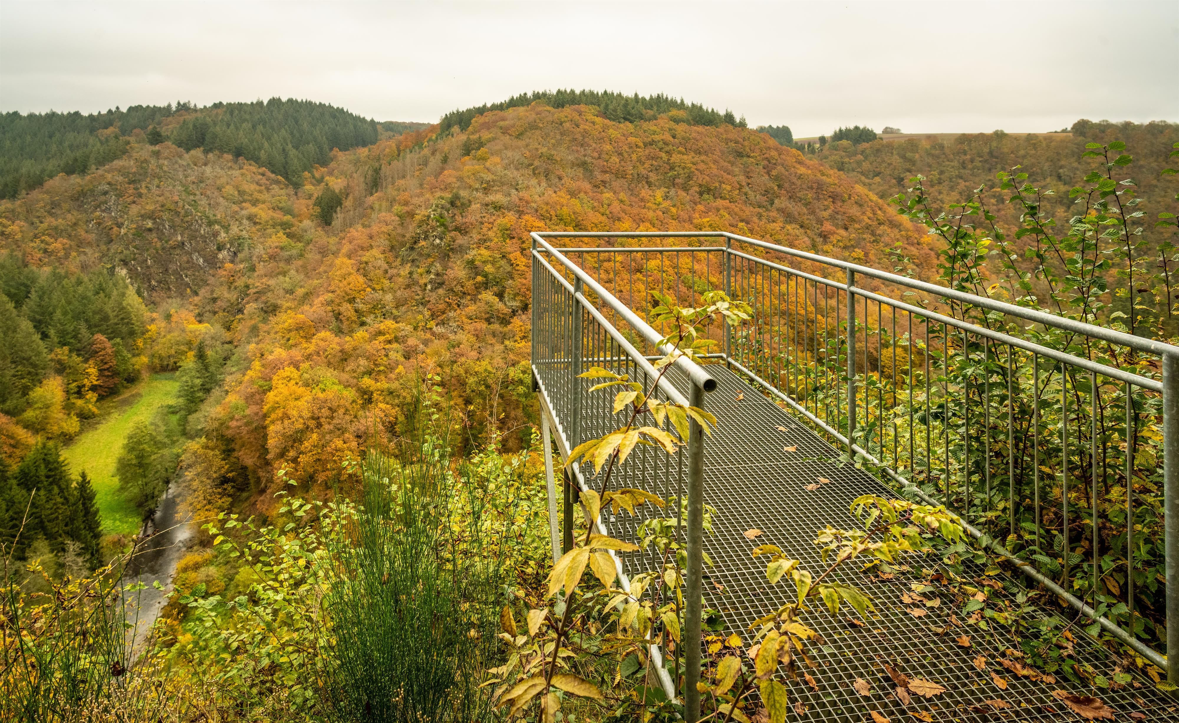 Die Aussichtsplattform liegt in der Nähe des Wanderwegs Eifelsteig.