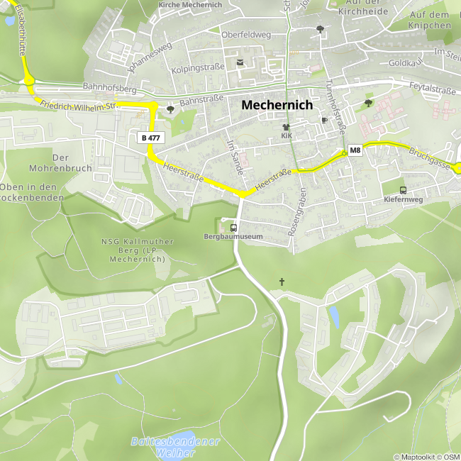 Zur Einrichtung des Besucherbergwerks und des Museums „Grube Günnersdorf“ in Mechernich wurde in den neunziger Jahren das im Jahre 1957 stillgelegte Bleibergwerk in Teilen freigelegt. Tauchen Sie, begleitet von einem fachkundigen Führer, in die Welt unter der Erdoberfläche ein und erleben Sie, unter welchen Bedingungen die Bergleute damals das „Eifelgold“ abgebaut haben. Bewegen Sie sich durch Stollen und schächte, durch unterirdische Höhlen und Gänge. Aber auch oberirdisch hat das Bergbaumuseum einiges zu bieten: in einem kleinen Museum sind zahlreiche Stücke aus der Zeit des aktiven Erzabbaus ausgestellt. Der ca. 10-12 km lange „bergbauhistorische Wanderweg“ führt vorbei an den Relikten des Mechernicher Bergbaus.