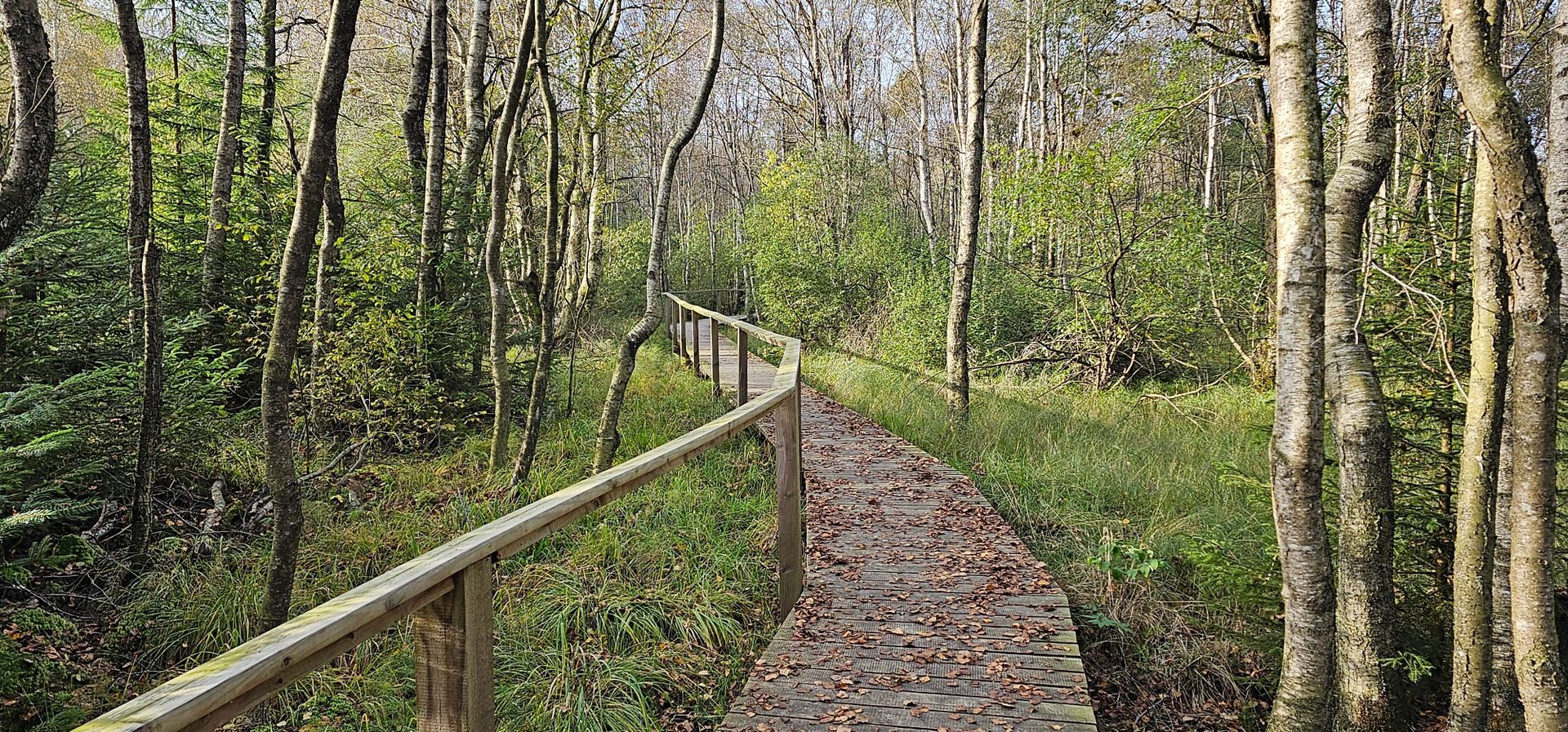 Das Moor und die Wiesenlandschaft drumherum sind bereits ein Erlebnis - ein ganz besonderer und ungewöhnlicher Zauber aber geht von dem Wäldchen aus, das sich mittendrin befindet: Es ist ein Bestand aus Karpatenbirken, die im