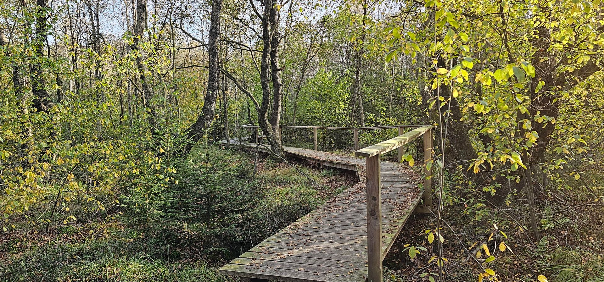 In dem kleinen Moor gedeihen zahlreiche seltene und interessante Pflanzen von der atlantischen Glockenheide, Moosbeere, Orchidee, Sumpfblutauge, bis zum Sonnentau, von der spitzblütigen Binse bis zum gefleckten Knabenkraut.