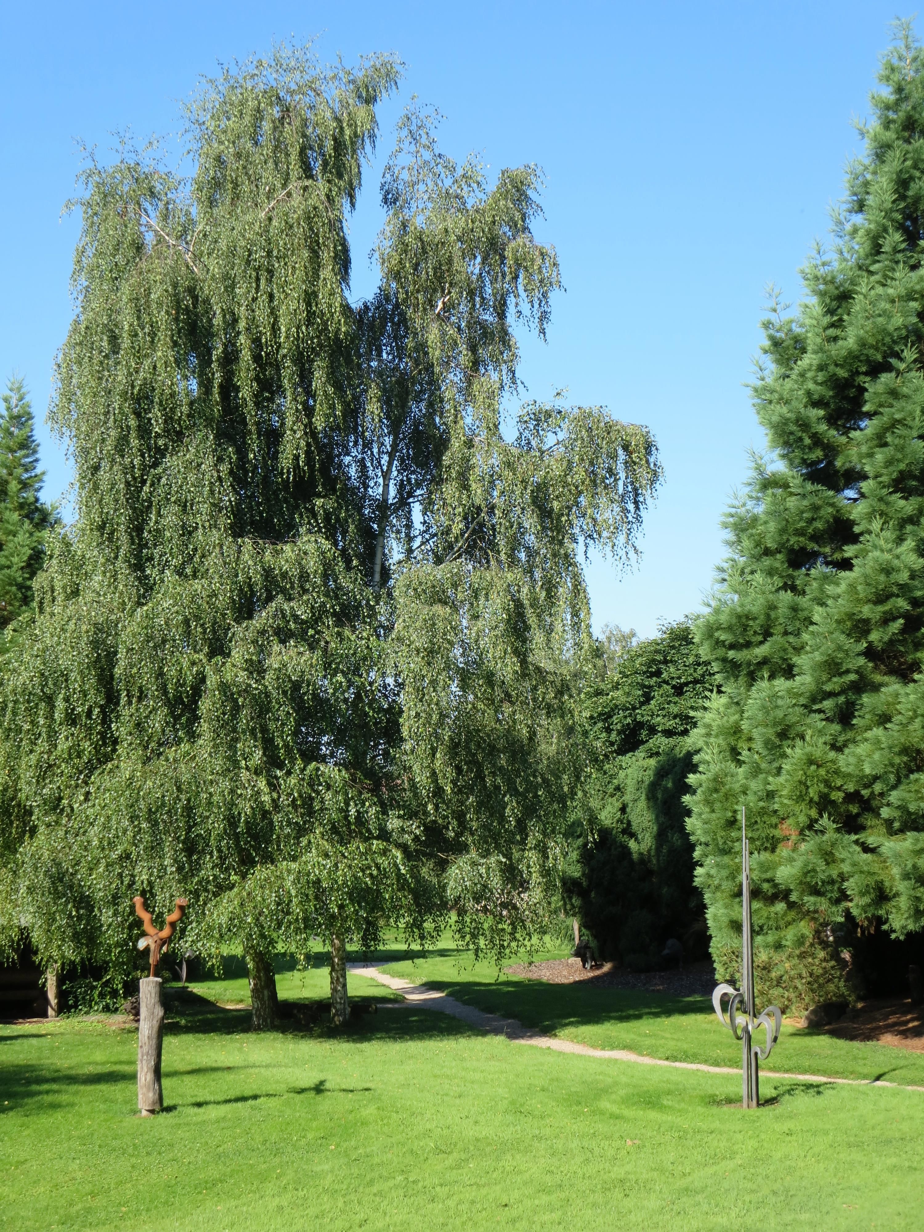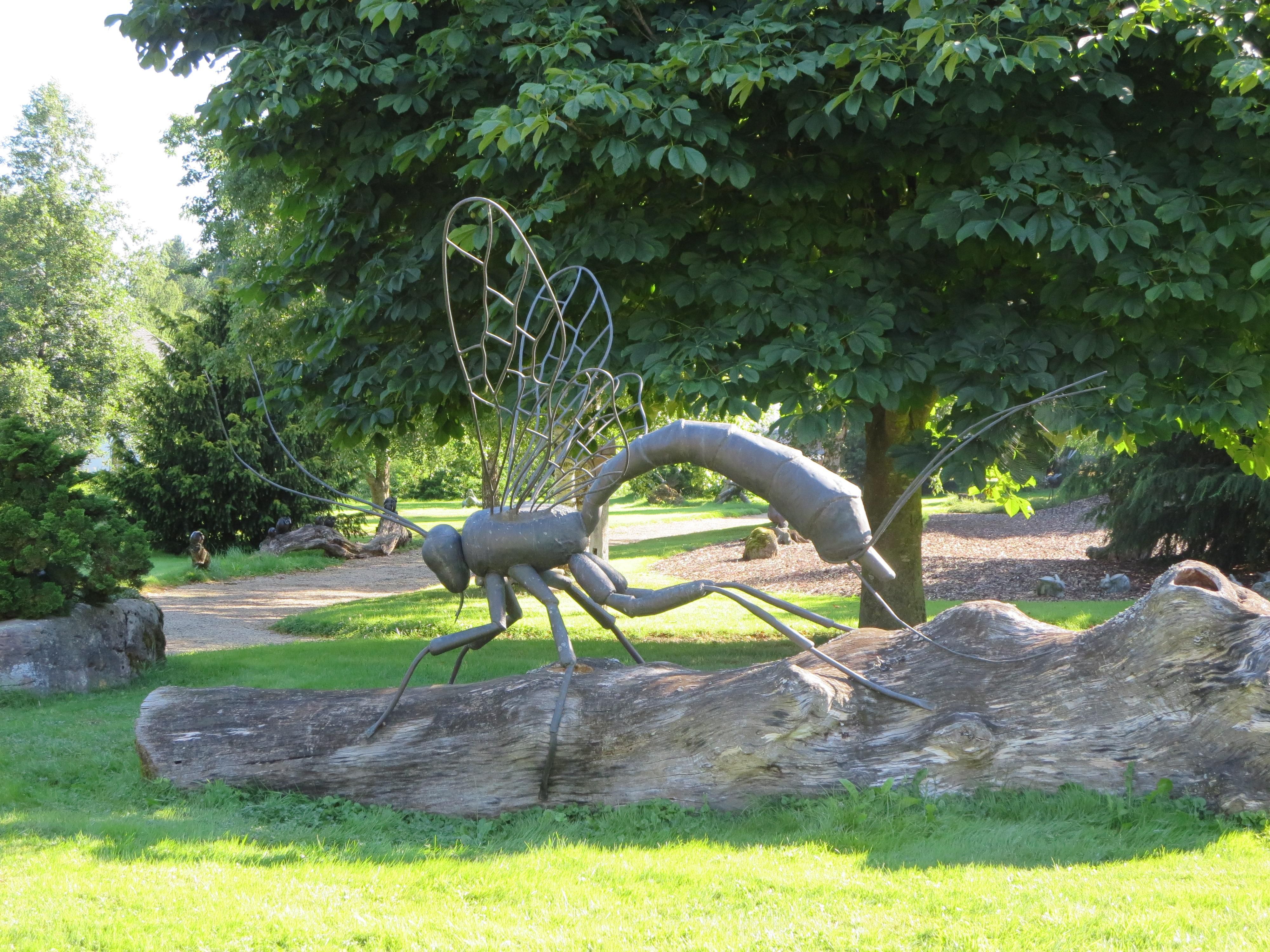 In dem großzügig angelegten Skulpturenpark der Familie Kruft erwartet die Besucher ein Spaziergang voller Entdeckungen. Zwischen Wiesen und Bäumen begegnet man lebensgroßen Fischreihern, riesigen Insekten aus Metall und einer Vielzahl liebevoll gestalteter Teiche, in denen sich Himmel und Kunst spiegeln.