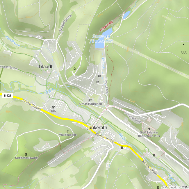 Im Mittelalter besaß Glaadt noch größere Bedeutung als Jünkerath, dass damals nur eine Hüttenansiedlung war. Deshalb wurde im 14. Jh. eine Burg an dieser Stelle durch den Grafen Dieterich von Schleiden erbaut.