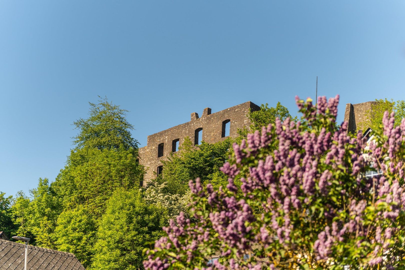 Die Unterburg ist gänzlich verschwunden. Zu erkennen sind noch Ansätze des Berings, der mit der Unterburg und der Stadtmauer Ulmens verbunden war, eine zwei Stockwerke aufragende Außenwand des Palas, sowie eine Zisterne und ein paar Grundmauern weiterer Gebäude. Der alte Teil der Burg in Ulmen wurde ca. 1.074 n. Chr. erbaut und ruht sehr wahrscheinlich auf Resten einer römischen Siedlung. Im Mittelalter wurde die Burg in Ulmen weiter ausgebaut und in die Oberburg, deren Mauerreste noch vorhanden sind und die Niederburg, die sich bis ans Maarufer erstreckte, unterteilt. Zwei Rittergeschlechte bewohnten die Burg, von der man ausgeht, dass sie bis 1673 aufgrund ihrer Größe nie angegriffen oder zerstört wurde. Erst die Truppen des Sonnenkönigs schafften dies. Sie wurde wieder aufgebaut, um 1689 erneut im Erbfolgekrieg zu fallen. Doch auch dieses Mal wurde die Ulmener Burg neu errichtet, nur die Stadtmauer wurde aufgegeben. Der Einfall der Soldaten Napoleons ließ auch Ulmen französisch werden und später preußisch. Die leerstehende Burg, deren letzter Nachkomme 1801 verstarb, ging bei einer Versteigerung an einen Cochemer Kaufmann, der sie als Steinbruch vermarktete. Als im 19. Jahrhundert ein verheerendes Feuer Ulmen niederbrannte bauten die Ulmener ihre Häuser mit Steinen der Burg wieder auf. Deshalb kann man noch heute an manchem Stall ein Wappen sehen. Erst Anfang des zwanzigsten Jahrhunderts wurde Die Ulmener Burg unter Denkmalschutz gestellt und kam in den Besitz der Ortsgemeinde Ulmen. Die Burg ist jederzeit frei zugänglich.