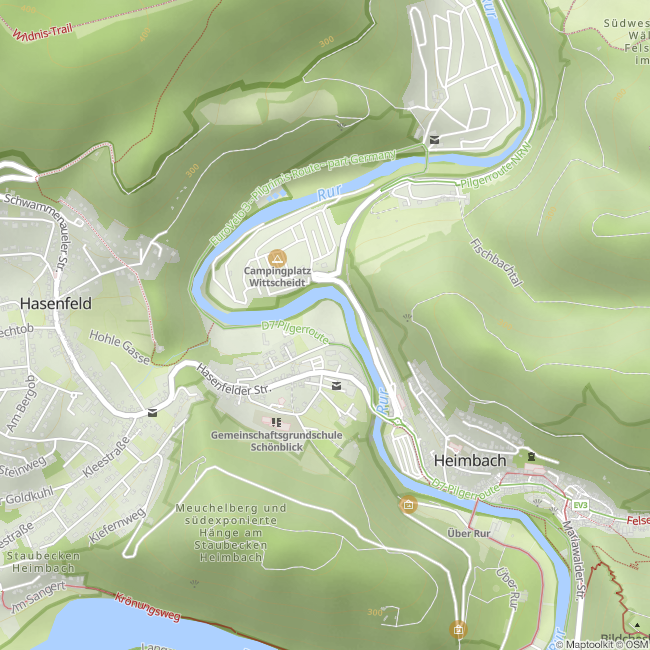 Das beheizte Freibad der Stadt Heimbach befindet sich direkt an der Rur im Nationalpark Eifel. Familienfreundlich angelegt, bietet es seinen Besuchern bei einer Wassertemperatur von 24°C und großzügigen Außenanlagen ein großes Betätigungsfeld. Egal ob Sie sich auf den Liegewiesen erholen möchten, im 25 x 12,5 m großen Schwimmerbecken mit Sprungbereich ihre Bahnen ziehen oder mit Freunden Beachvolleyball und Tischtennis spielen wollen, hier wird Ihnen einiges geboten! Im Planschbecken sorgen eine Schwalldusche und ein lustiger Springbrunnen für Badespaß und Abkühlung bei Wassertiefen von 15-45 cm in drei Becken. Etwas turbulenter geht es im 678 m² großen, nierenförmigen Nichtschwimmerbereich zu. Hier sind die Plätze auf der kleinen Insel sehr begehrt. Fuß-, Volley- und Tischtennisbälle sowie Tischtennisschläger und Tauchringe können im Freibad kostenlos ausgeliehen werden. Im Bademodenshop können neben Badebekleidung auch Wasserspielzeuge u. ä. erworben werden. Für das leibliche Wohl sorgt ein Imbiss mit einer großen Auswahl an Speisen und Getränken. Das Gelände ist barrierefrei zugänglich.