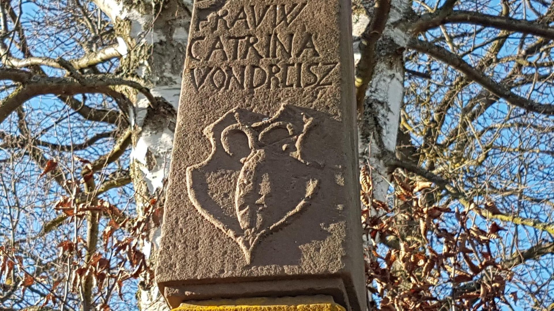 "1671 ZU DER EHREN GOTTES HAT DISZ CREUTZ LASSEN AUF RICHTEN PETTER KEUL UND SEIN HAUS FRAUW CATRINA VON DREIS"