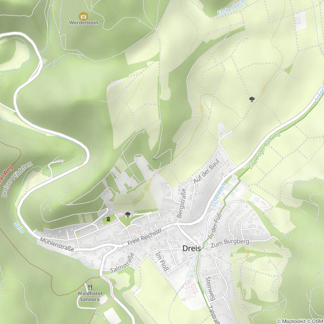 Am Fuße des "Blenter" genannten Hügels, wo auch der Dreiser Orchideenpfad beginnt, trifft der Wanderer auf zwei ungleiche Gefährten. Von ihrem exponierten Standort aus schauen die beiden Kreuze nun bereits seit fast einhundert Jahren gemeinsam auf das Dorf im Tal hinab.