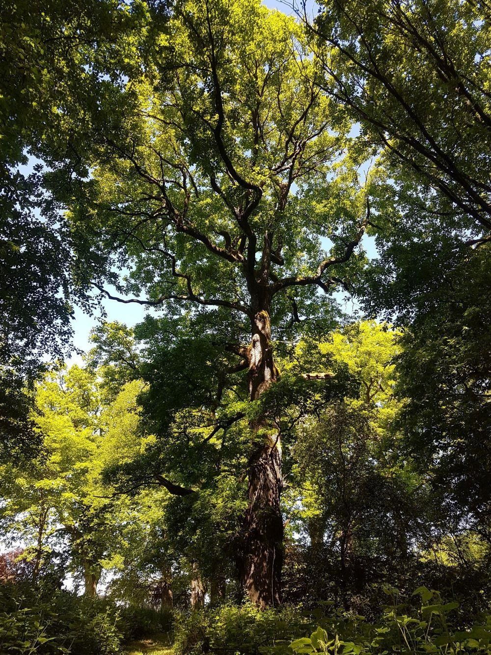 Die beeindruckende Ansammlung uralter, riesiger Eichen mitten im kleinen Eifelörtchen Hasborn dürfte in Deutschland einmalig sein. Die mächtigen Bäume wachsen auf dem letzten Hütewald und ältestem Naturdenkmal der Region. Laut Überlieferung ist der Hasborner Eichenhain während des 30jährigen Krieges entstanden. Marodierende Banden hatten es den Bauern unmöglich gemacht, die Schweine zur Waldweide in die umliegenden Eichenwälder zu treiben. Statt dessen sammelte die Dorfbevölkerung die Eicheln im Wald zusammen und schüttete sie den Tieren am Ortsrand als Futter aus. Einige Früchte sollen dabei von den Vierbeinern in den Boden eingearbeitet worden sein, so dass sich Keime und Schösslinge entwickeln konnten, die heute als beeindruckende Eichen Spaziergänger erfreuen.