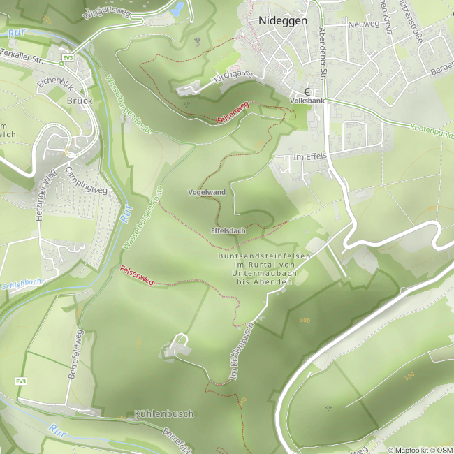 Sie erreichen Nideggen aus Düren und Heimbach über die L 249, aus dem Aachener Land über die B 399 und L 11, aus dem Monschauer Land über die L 246 sowie aus dem Raum Köln-Bonn über die B 265 und L 11. Parken Sie am Nationalpark-Tor Nideggen, Effels 9.