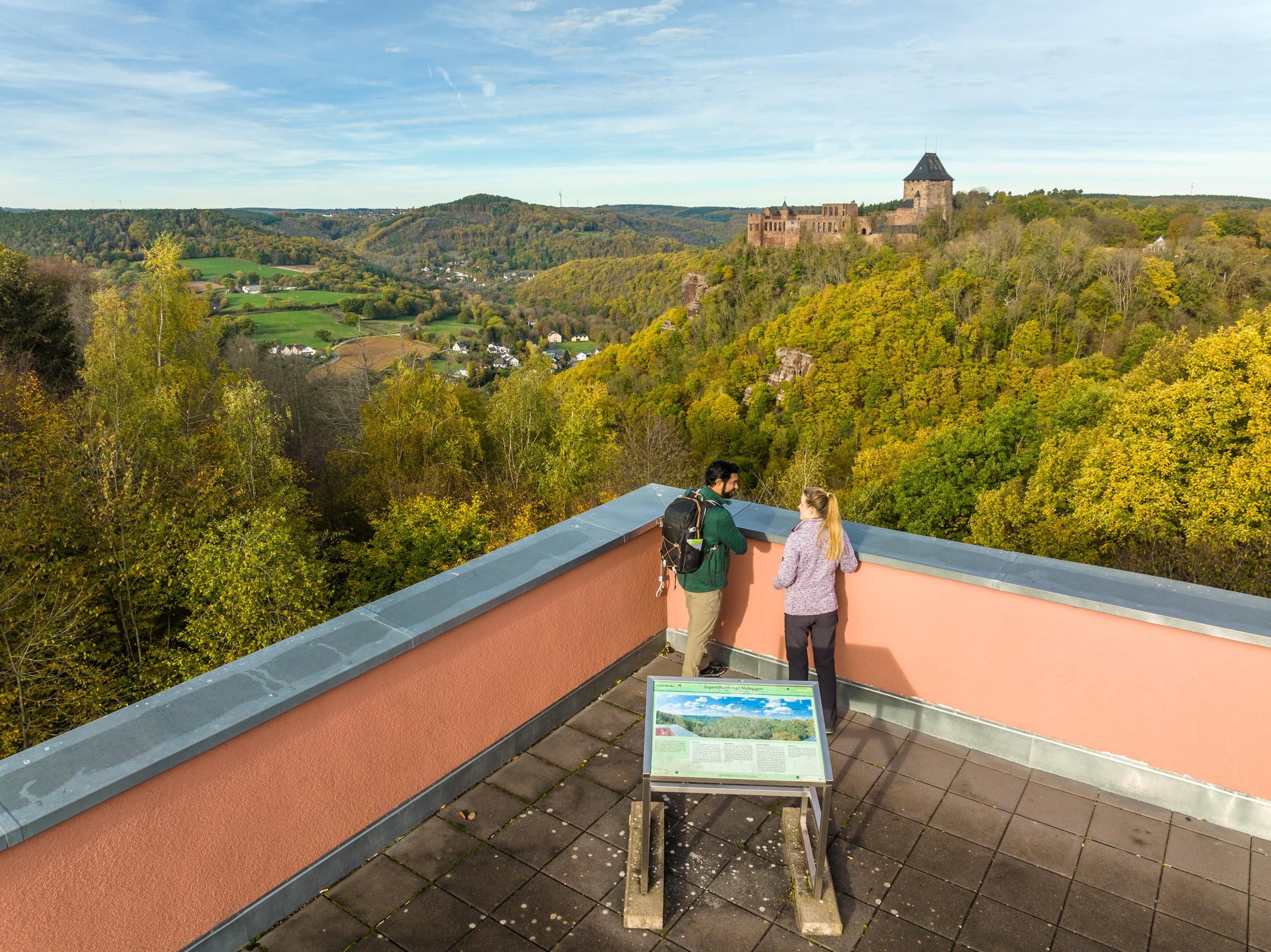 Von der großen Aussichtsterrasse der Jugendherberge Nideggen erschließt sich dem Besucher ein einzigartiger Blick in die weite Landschaft der Rureifel. Die Umgebung wird geprägt durch mächtige Buntsandsteinfelsen, grüne waldreiche Hügel, fruchtbare Wiesen und in die Natur eingebettete kleine Orte. Nideggen wird nicht umsonst "Das Tor zur Eifel" genannt.