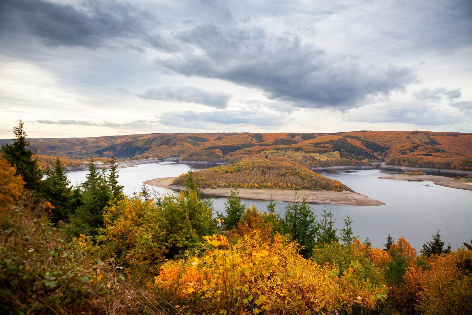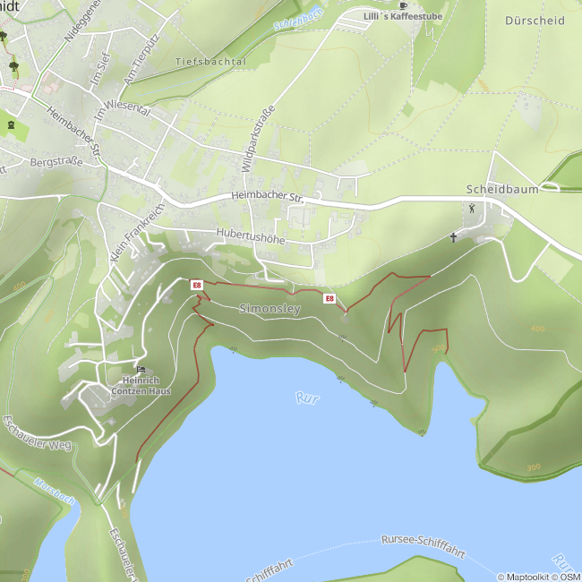 Der Eifel-Blick "Schöne Aussicht" auf der "Simonsley" (415 Meter über dem Meeresspiegel) bietet Ihnen oberhalb des Rursees in südost- bis südwestlicher Richtung einen beeindruckendes Panorama, wobei der "Kermeter", ein Kernbereich im Nationalpark Eifel, die Blicke auf sich zieht.