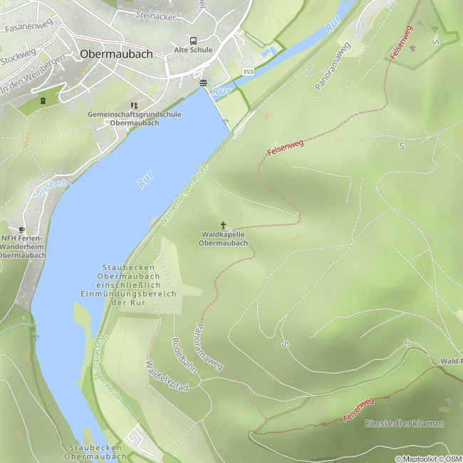 Bitte nutzen sie in Obermaubach die Parkplätze am Ortseingang oder an der Staumauer. Von dort ca. 3,25 km der zum Beschilderung zum "Eifel-Blick" folgen.