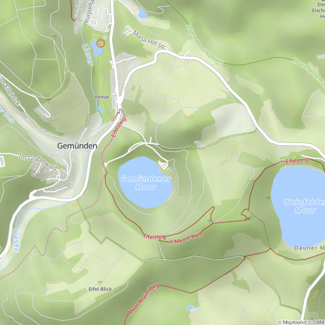 Das 30.000 Jahre alte Gemündener Maar, das nördlichste und kleinste der drei Dauner Maare, liegt malerisch in der Eifel, nur 1,5 km südlich von Daun. Der Maarsee ist rund 325 Meter lang, 300 Meter breit und bietet eine Fläche von etwa 7,2 Hektar.