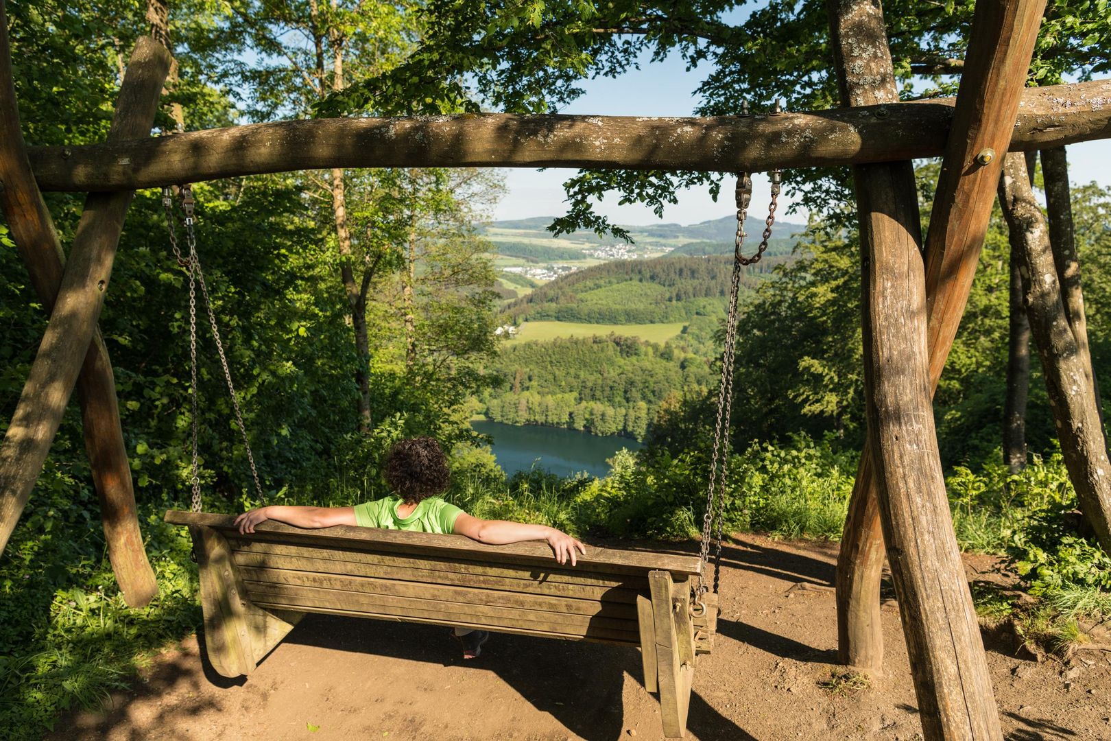 Dafür bietet der Aussichtspunkt Dronketurm, der nach Adolf Dronke, dem Gründer des Eifelvereins, benannt ist, einen einzigartigen Blick sowohl aufs Gemündener Maar als auch auf das benachbarte Weinfelder Maar. Auf der Maarschaukel kann man das Maar von oben bewundern und dabei die Beine baumeln lassen.