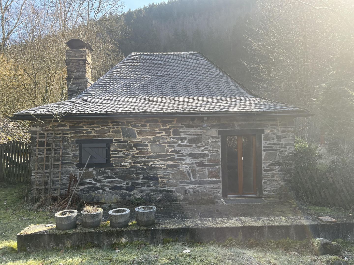 Das ehemalige Werksgebäude des Hammerwerkes dokumentiert eindrucksvoll die hiesigen Produktions- und Arbeitsverhältnisse im 18. Jh.. Seitlich des wirtschaftshistorischen Gebäudes ist der vormalige Wasserlauf der das zum Antrieb des Hammerwerkes erforderliche Wasser führte, zu erkennen.