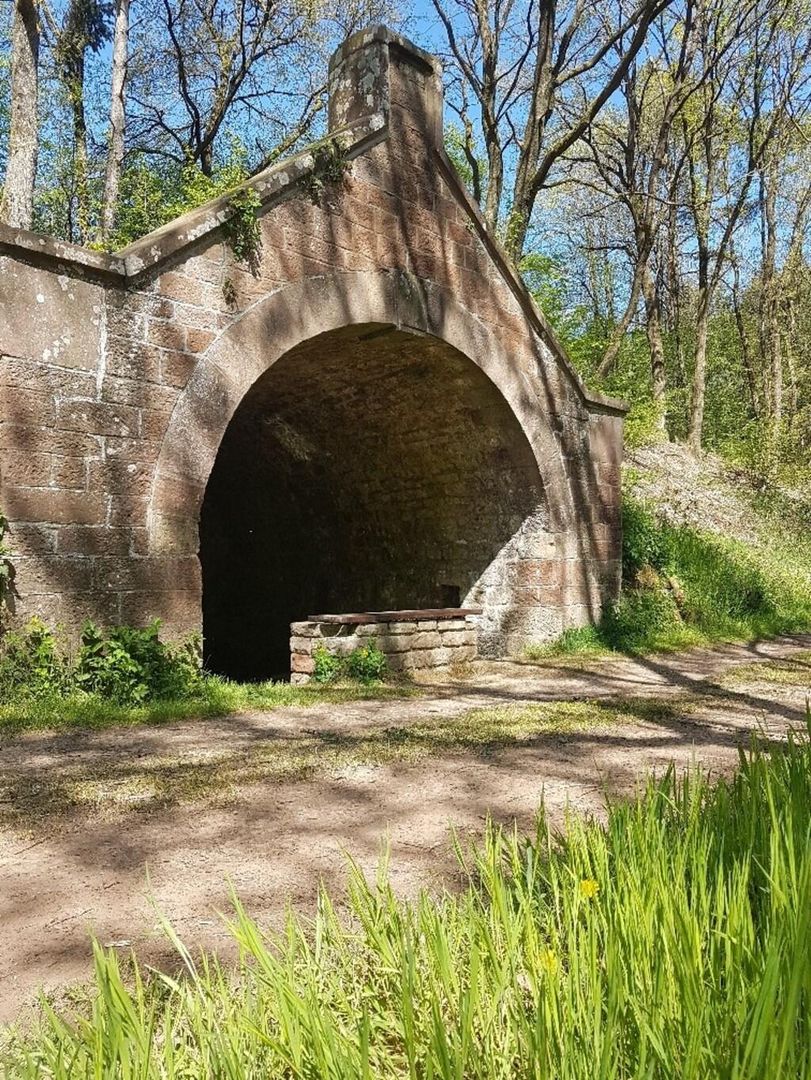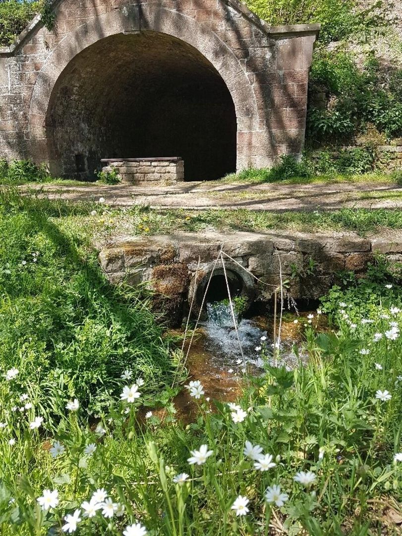 Das alte Waschhaus ist ein von einer Bruchsteintonne überdeckter Waschplatz, der von Quellwasser durchflossen wird und noch im Originalzustand erhalten ist. Hier schrubbten die Heidweilerinnen über Jahrzehnte die Wäsche und legten sie anschließend zum Bleichen auf die umliegenden Wiesen.