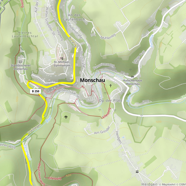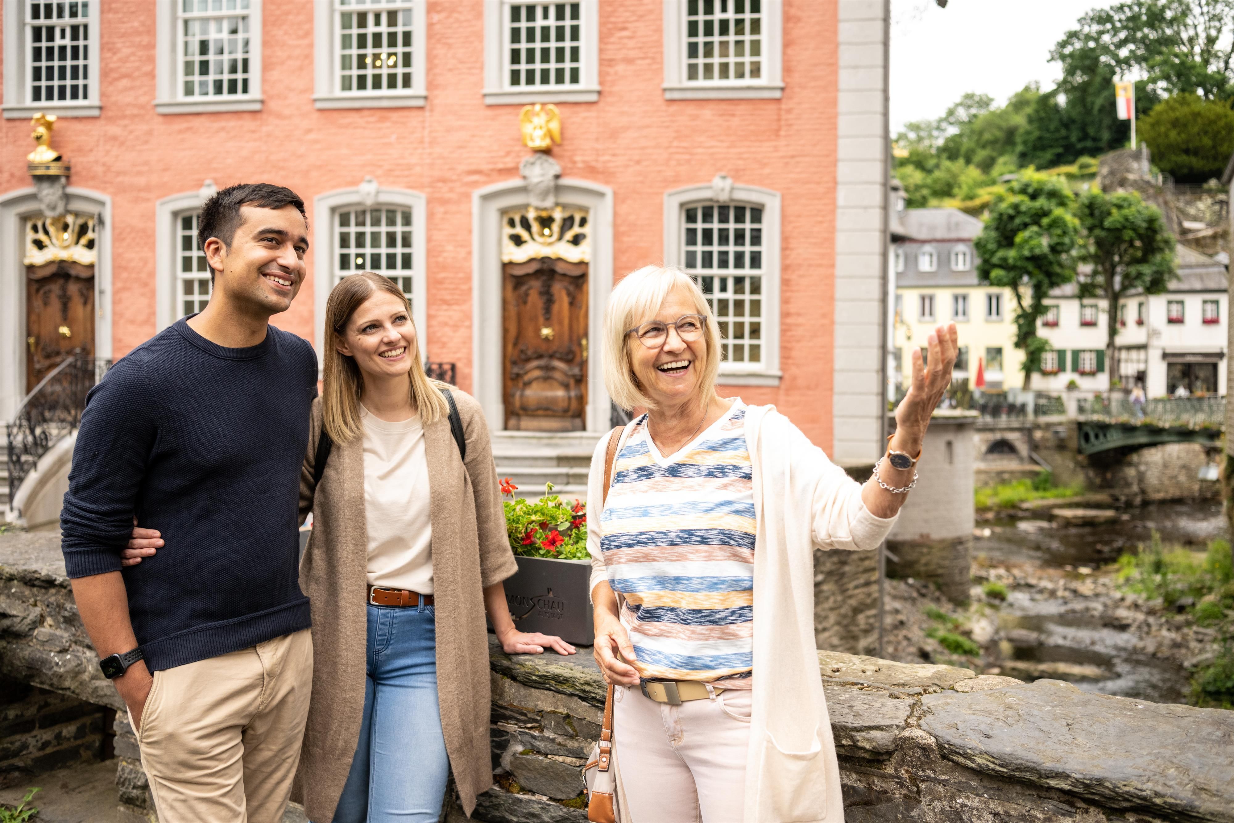 Die historische Altstadt spiegelt die lange Geschichte der Stadt wider: Burg Monschau stammt aus dem Mittelalter und wurde beinahe zur Ruine, bevor sie erneuert wurde. Heute beherbergt sie eine Jugendherberge und ein Altenheim. Prächtige Häuser wie das Rote Haus zeugen von der Blütezeit der Tuchindustrie im 18. Jahrhundert. Die letzte Tuchfabrik hat zwar schon lange geschlossen, doch die schönen Häuser sind geblieben.