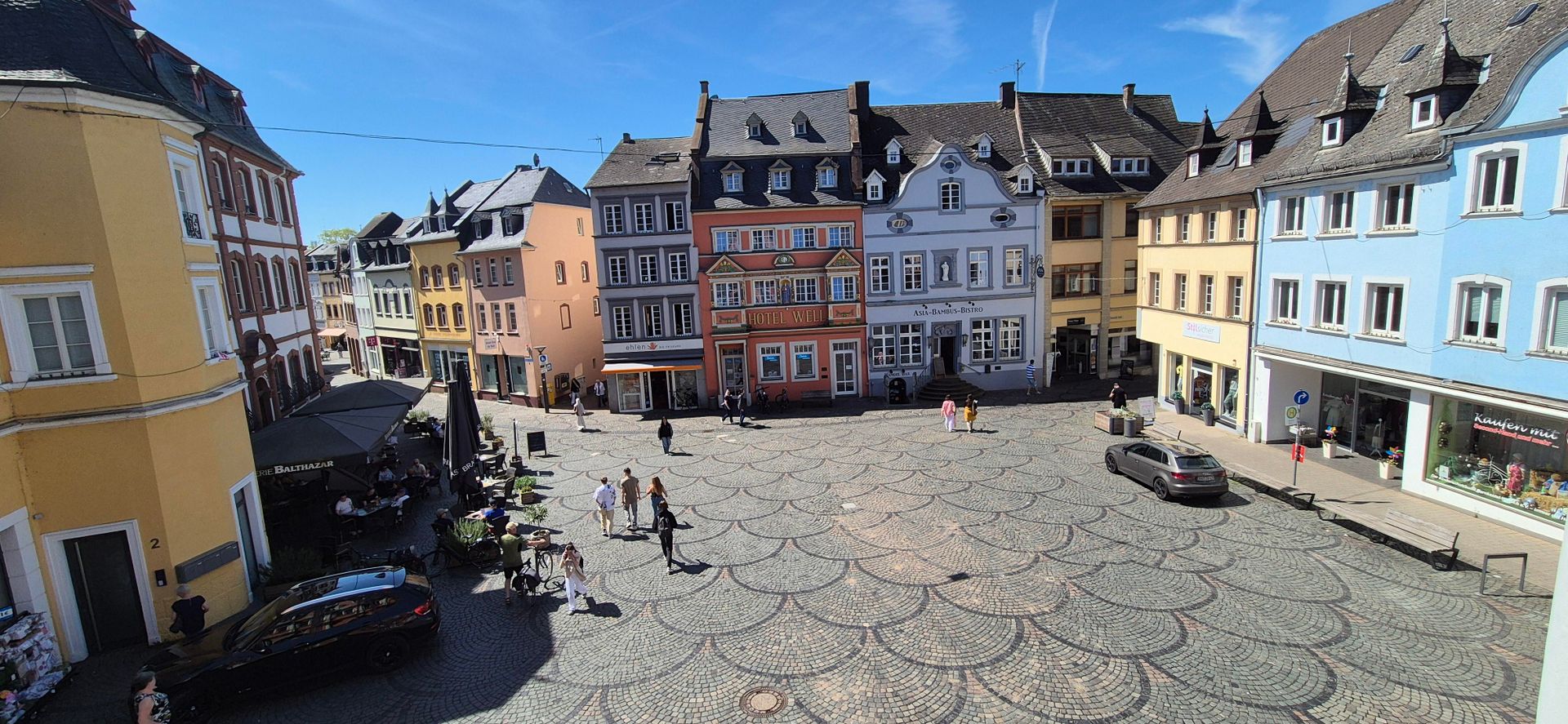 Gegenüber dem Alten Rathaus steht das heutige Hotel Well. Früher trug der prachtvolle Renaissancebau den Namen "Zum Wolf". Daneben ein schlichter Barockbau des 18. Jahrhunderts, das ehemalige Haus Neuerburg. Das Barockgebäude auf der Längsseite wurde als Posthalterei 1753 von der Posthalterfamilie Fier errichtet.