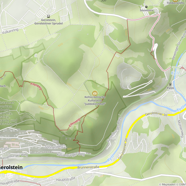 Der Römer Marcus Victorius Polentius stiftete auf dem Munterley-Plateau 124 n. Chr. der Göttin Caiva einen Weihetempel, vermutlich als Dank für eine siegreiche Schlacht. Die Kultstätte wird heute im Volksmund "Juddekirchhof"genannt. Der Name kommt von "Joddekirchhoff", d. h. "Hof um die Kirche (Heiligtum) der Jodd", wobei "Jodd" gleichbedeutend mit "Taufpatin" ist. Die keltischen Matronen hatten in etwa dieselben Aufgaben, wie katholische Taufpatinnen. Nach der Zerstörung durch die Franken im 6. Jahrhundert, sind bis heute die Fundamente und Reste der Umfassungsmauern des Tempelbezirks erhalten geblieben.