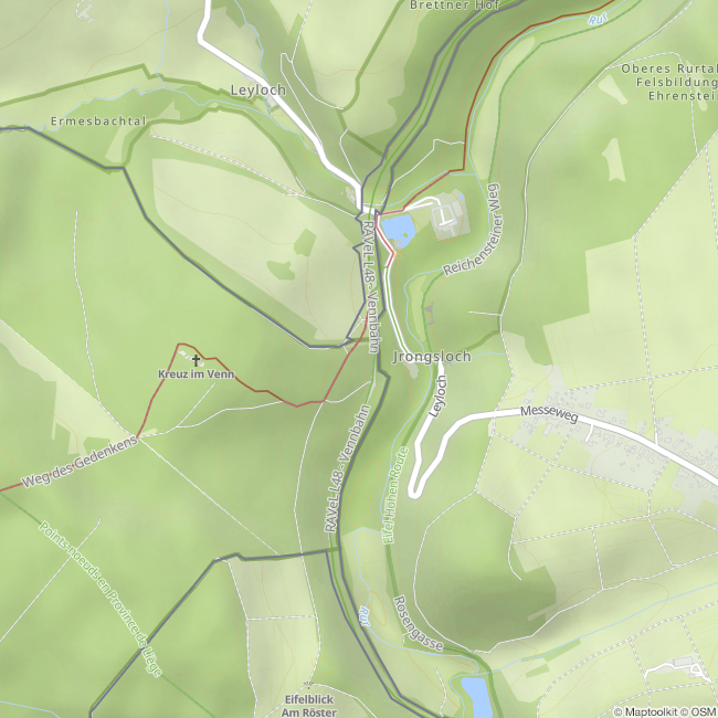 Als einziger Konglomeratfelsen im Monschauer Land liegt am Rande des Hohen Venn der gewaltige, 80 Meter lange Felsen der Richelsley. Ihn krönt das 1890 zu Ehren des Priors Stephan Horrichem, des Apostels vom Hohen Venn, errichtete Kreuz. Der Prior des Prämonstratenserklosters Reichenstein war unermüdlich in seiner Hilfsbereitschaft für die bedrängten Menschen am Venn während des 30 jährigen Krieges. Die Eifeldichterin Clara Viebig hat mit ihrem naturalistischen Roman "das Kreuz im Venn" berühmt gemacht. Das 6 m hohe Eisenkreuz steht auf einem 12 Meter hohen Konglomeratfelsen. Der Sage nach wollte der Teufel mit dem gewaltigen Gesteinsblock die kaiserliche Pfalz in Aachen zerstören. Aus Müdigkeit hat er ihn jedoch vorher fallen gelassen. In Wirklichkeit ist der Stein wohl durch vulkanisches Wirken dorthin gekommen.