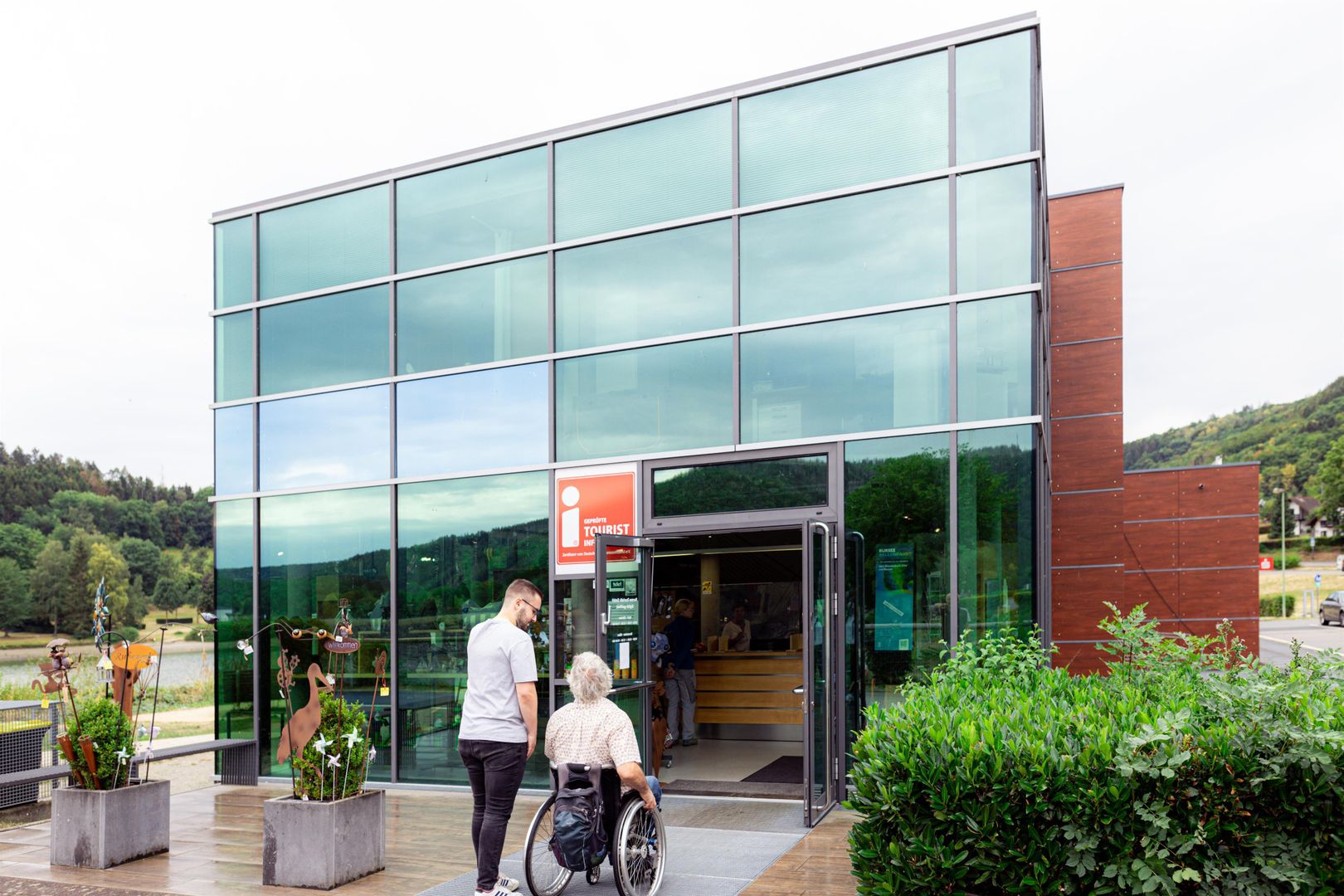 Im Nationalpark-Tor befindet sich auch die Tourist-Information. Das Team freut sich auf Besucher und hat immer Tipps für eine tolle Wanderung, Radtour und Ausflüge bereit, um die vielfältige Erlebnisregion Nationalpark Eifel erkunden zu. Es besteht die Möglichkeit, sich mit ausreichendem Karten- und Informationsmaterial auszustatten, sodass einem perfekten Ausflug nichts mehr im Wege steht. Ganz nebenbei lädt der dazugehörige Shop zum Stöbern ein. Hier findet jeder ein schönes Andenken für sich selber oder ein Geschenk, das an den Besuch in der Erlebnisregion Nationalpark Eifel erinnert. Zudem steht kostenfreies W-LAN, sowie eine öffentliche Toilette zur Verfügung.