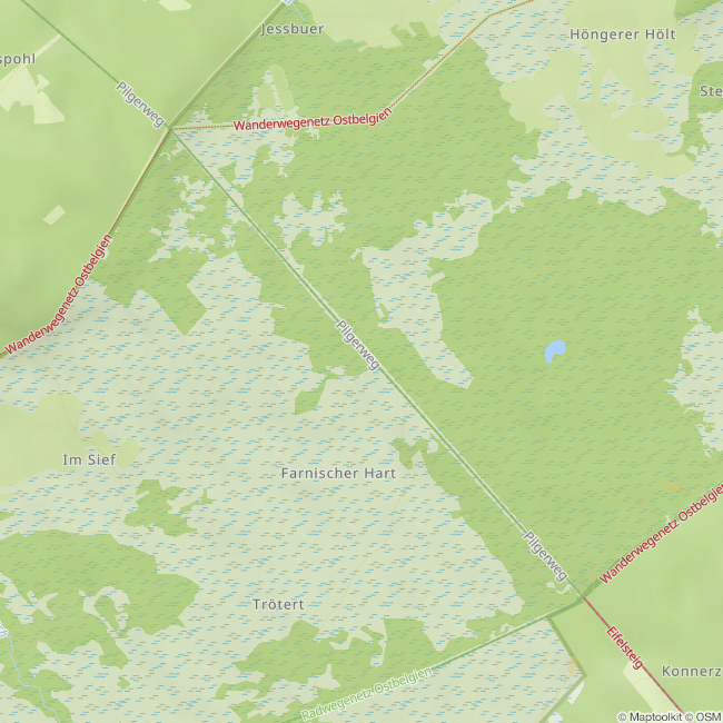 Im Osten des Hohen Venns schließt sich die Rureifel (Simmerath, Monschau) mit großen Wäldern und dem tief eingeschnittenen Rurtal an.