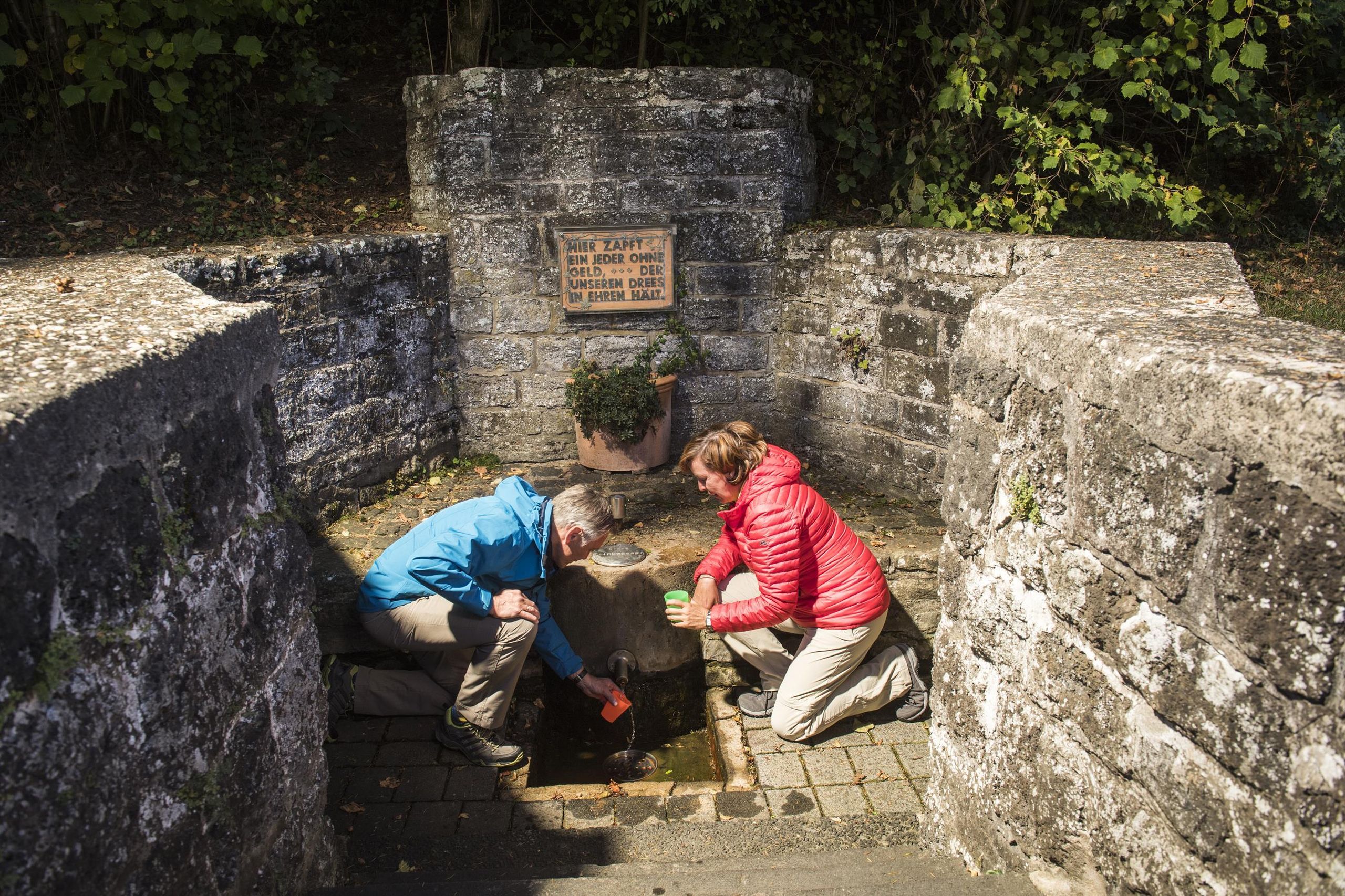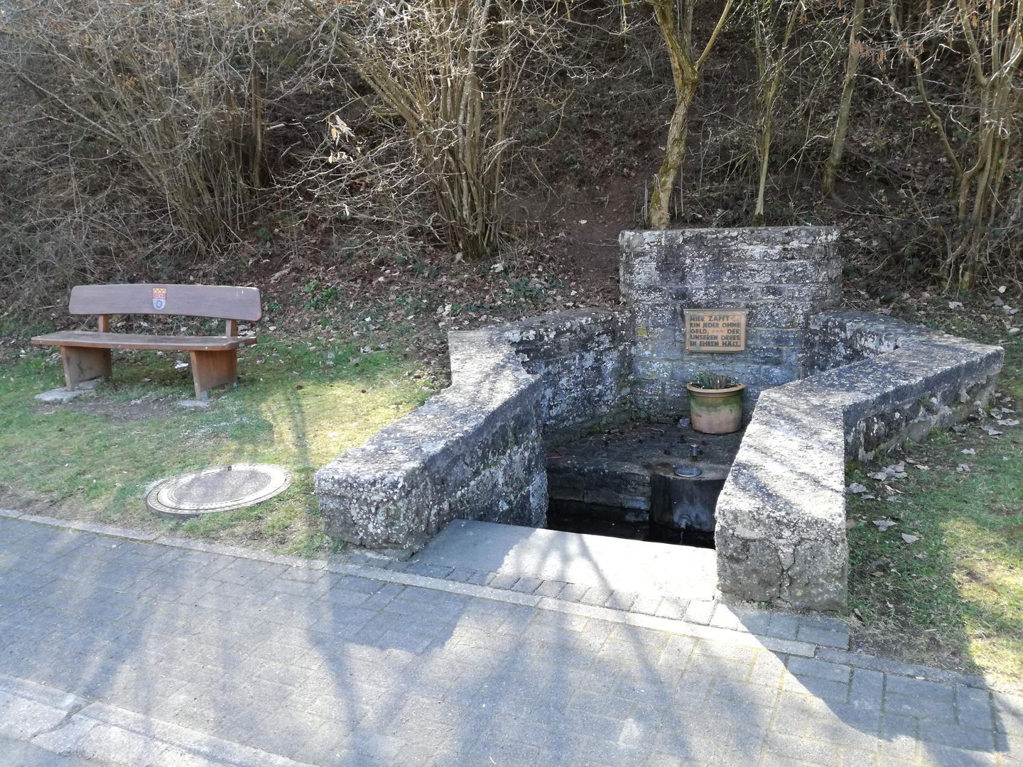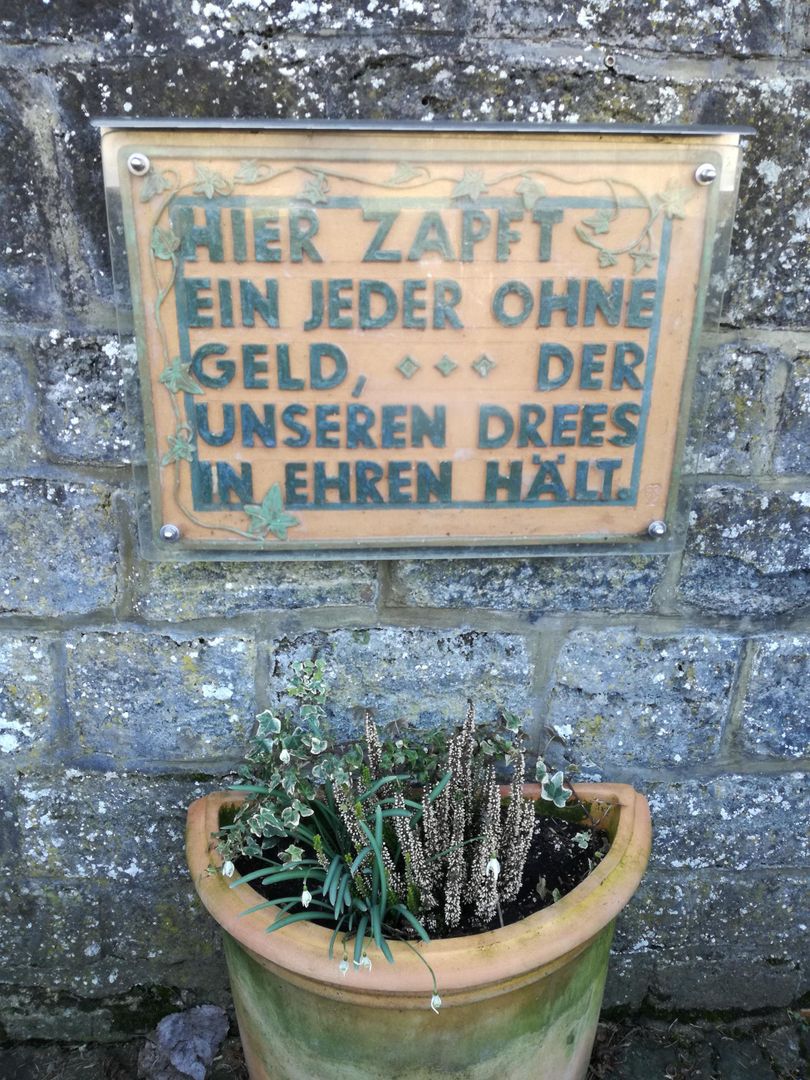 Der Niederstadtfelder Drees liegt am Ortsrand Richtung Schutz. In einem gemauerten Brunnen sprudelt die Quelle 2 Liter erfrischend kühles Mineralwasser in der Minute an die Erdoberfläche. Die Quelle weist einen hohen CO2-Gehalt auf und hat eine hohe Natrium- und Chlorwerte. Das Wasser ist bei allen sehr beliebt mit seinem relativ hohen Eisengehalt und geringer Kohlensäure. Trete die Stufen zur Quelle hinunter und fülle das ca. 10 Grad kalte Wasser in dein Gefäß. Genieße das Wasser und lese den Spruch auf der Tafel. Auf den Bänken rund um den Brunnen kannst du dich mit Wanderern und Einheimischen austauschen.