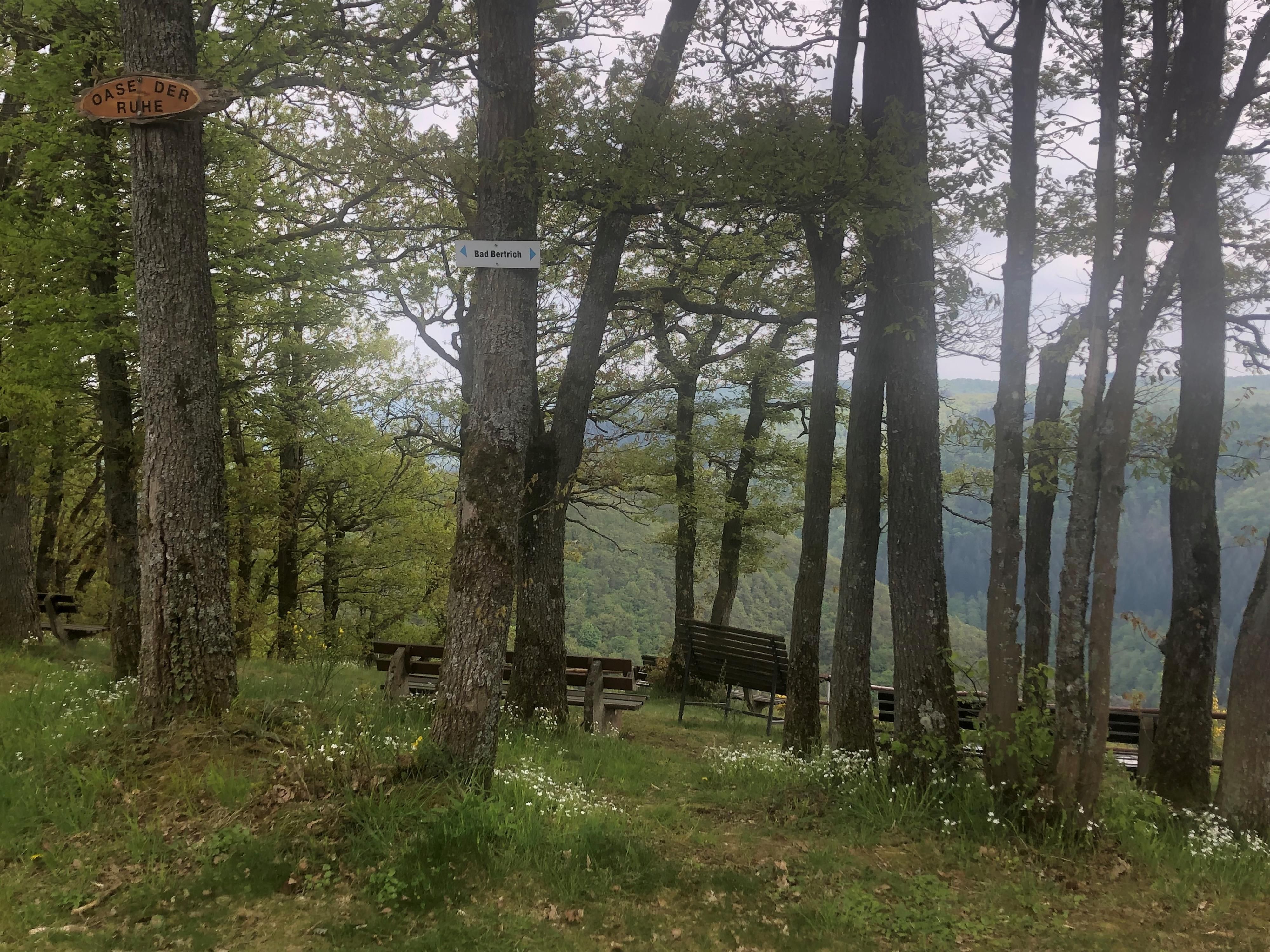 Bei deiner Wanderung rund um Bad Bertrich kommst du zur Oase der Ruhe - einem idealen Pausenplatz mit imposantem Blick auf Bad Bertrich und den umliegenden Kondelwald. Deine Blicke schweifen in den Ferne und folge von oben dem Verlauf der Üß.