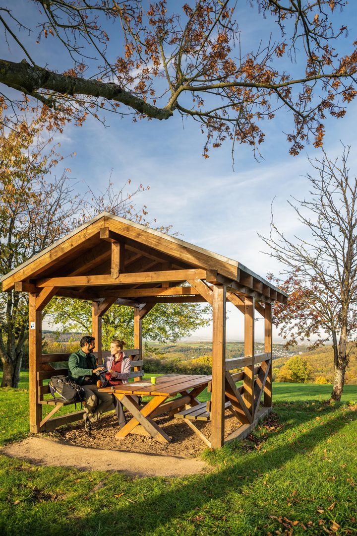 Unweit vom Krawutschketurm entfernt befindet sich der idyllische Rastplatz "Burgberg". Hier können Wanderer nach ihrer Tour gemütlich verweilen und eine wohlverdiente Pause einlegen.