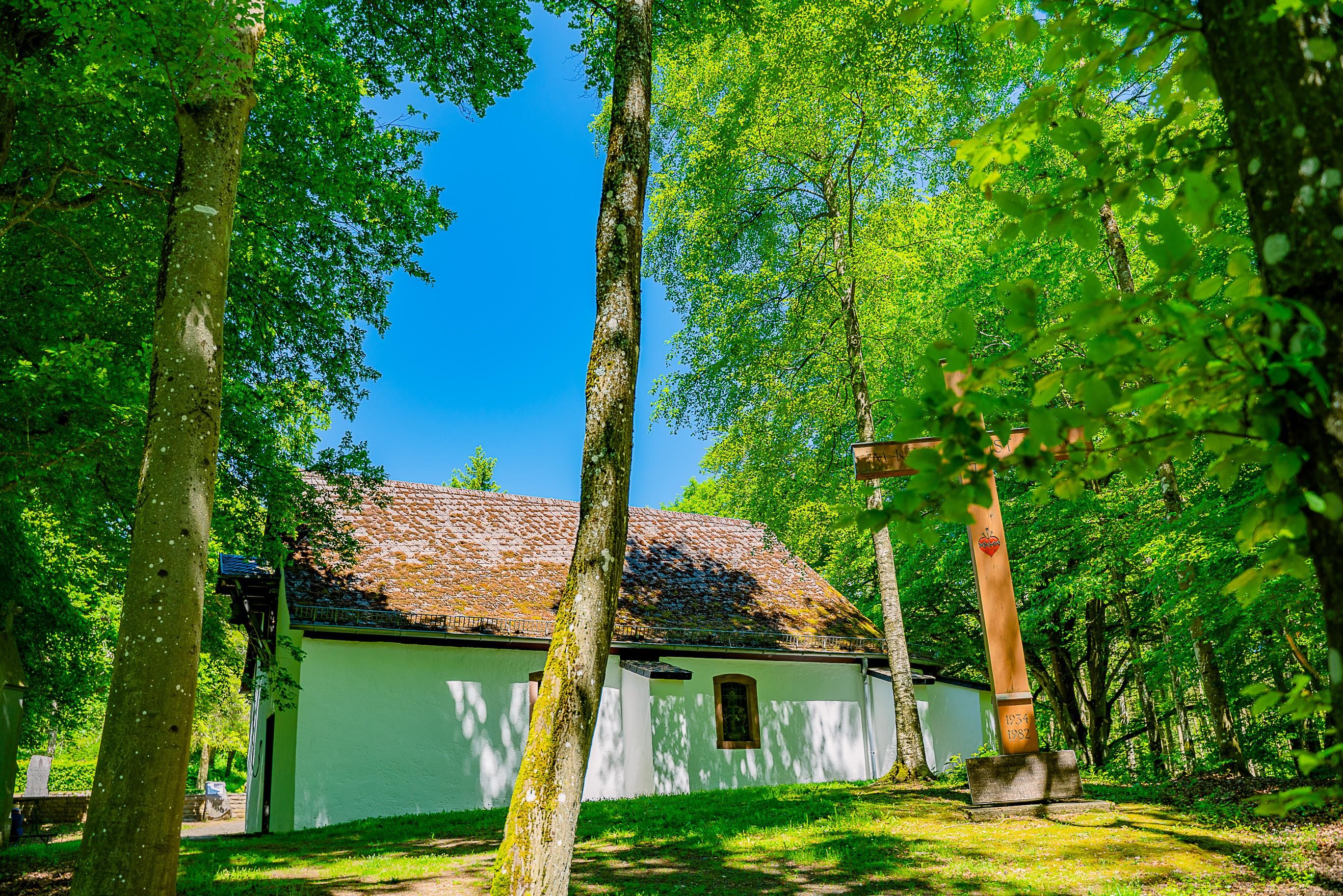 Schwarzenberg-Kapelle Auf dem 562 m hohen Schwarzenberg steht versteckt im Wald eine Kapelle, die der schmerzhaften Gottesmutter geweiht ist. Die Schwarzenberg-Kapelle wurde im Jahr 1719 errichtet. Der Altar mit der Pietà im Mittelteil wird von den Heiligen Aloisius (rechts) und Augustinus eingerahmt. Danktafeln und Krücken an den Wänden weisen darauf hin, dass die Schwarzenberg-Muttergottes bei Krankheit angerufen wurde und geholfen hat. Neben der Kapelle befindet sich der Heldenfriedhof mit den Gräbern der Soldaten, die im 2. Weltkrieg in Kelberg ums Leben kamen, etwas unterhalb steht das Gefallenenehrenmal für die Soldaten des 1. und 2. Weltkrieges.