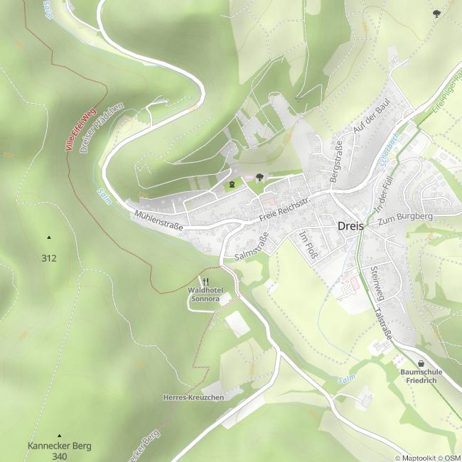 Die Quelle wurde bereits im 16. und 17. Jahrhundert in Urkunden genannt. In der Zeit um 1900 drückte sich das Wasser im Bereich zwischen Brücken- und Mühlenstraße an mehreren Stellen perlend aus dem Boden. In der Nähe der heutigen Sparkasse befand sich bis 1960 der Dreesbrunnen mit einer Drehvorrichtung zur allgemeinen Benutzung. Nachdem sich der Wasserspiegel durch die Verlegung von Kanalisation und Wasserleitung gesenkt hatte, wurde der Brunnen entfernt. Jedoch ließ die Gemeinde Dreis in den folgenden Jahren Bohrungen durchführen. Mineralwasser konnte in den Sedimenten der Flussterrasse der Salm lokalisiert werden. 1965/66 gelang es, durch tiefer gehende Bohrungen eine Quelle zu sondieren. Diese Erschließungsquelle an der Mühlenstraße wurde durch korrosionsfeste Pressholz-Filterrohre ausgebaut und mit einem Betonschacht gesichert. Eine Kunststoffleitung führt das Wasser bis zur Brückenstraße. Dort ist eine offene Trinkbrunnenanlage geschaffen worden, aus dem das stark eisenhaltige Dreiser Wasser mittels einer Unterwasserpumpe in ein rundes Steinbecken sprudelt, das sich durch das ausfallende Eisenhydroxyd leuchtend braun färbte. 1997 wurde die Trinkbrunnenanlage erneuert. Das eisenhaltige Wasser des St.-Martins-Brunnen fügt sich in die Reihe der Mineralwässer des Rheinischen Schiefergebirges ein. Es ist als Natrium-Calzium-Hydrogenkarbonat-Säuerling zu bezeichnen und darf den Heilwässern zugeordnet werden. Der therapeutische Wert des sehr kohlensäurereichen Wassers ist nachgewiesen. Es wird ihm im Rahmen einer Trinkkur eine lindernde Wirkung bei Magenbeschwerden sowie eine günstige Wirkung bei chronischen, gutartigen Infektionen der Harnwege zugeschrieben