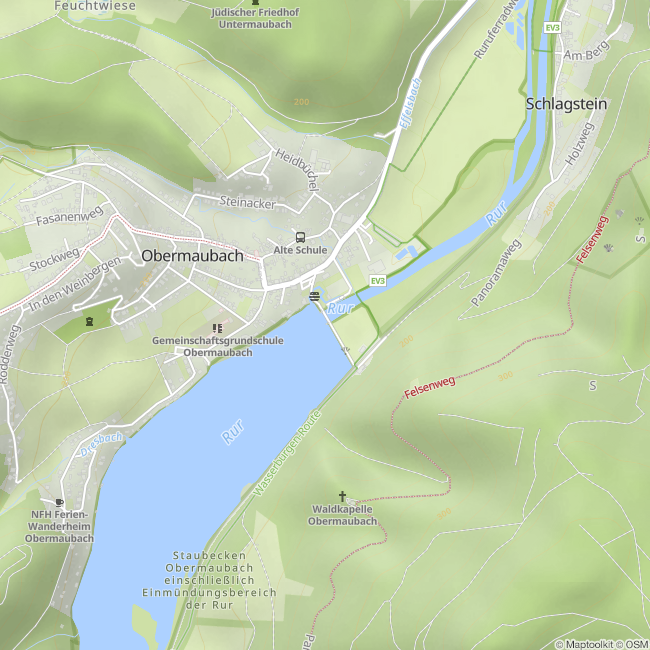Das Staubecken Obermaubach in der Gemeinde Kreuzau ist ein Paradies für allerlei Wassersportfreunde; so kann man Rudern, Tretbootfahren oder Paddeln. EIn Bootsverleih bietet eine Vielzahl an unterschiedlichen Boote für Gäste an. Ebenfalls kann man Segeln oder Surfen, wenn genug Wind da ist. Die verschiedensten Fischarten im Stausee bieten perfekte Möglichkeiten für Angler. Die Umgebung bietet sich für unterschiedlichste Wanderungen an.