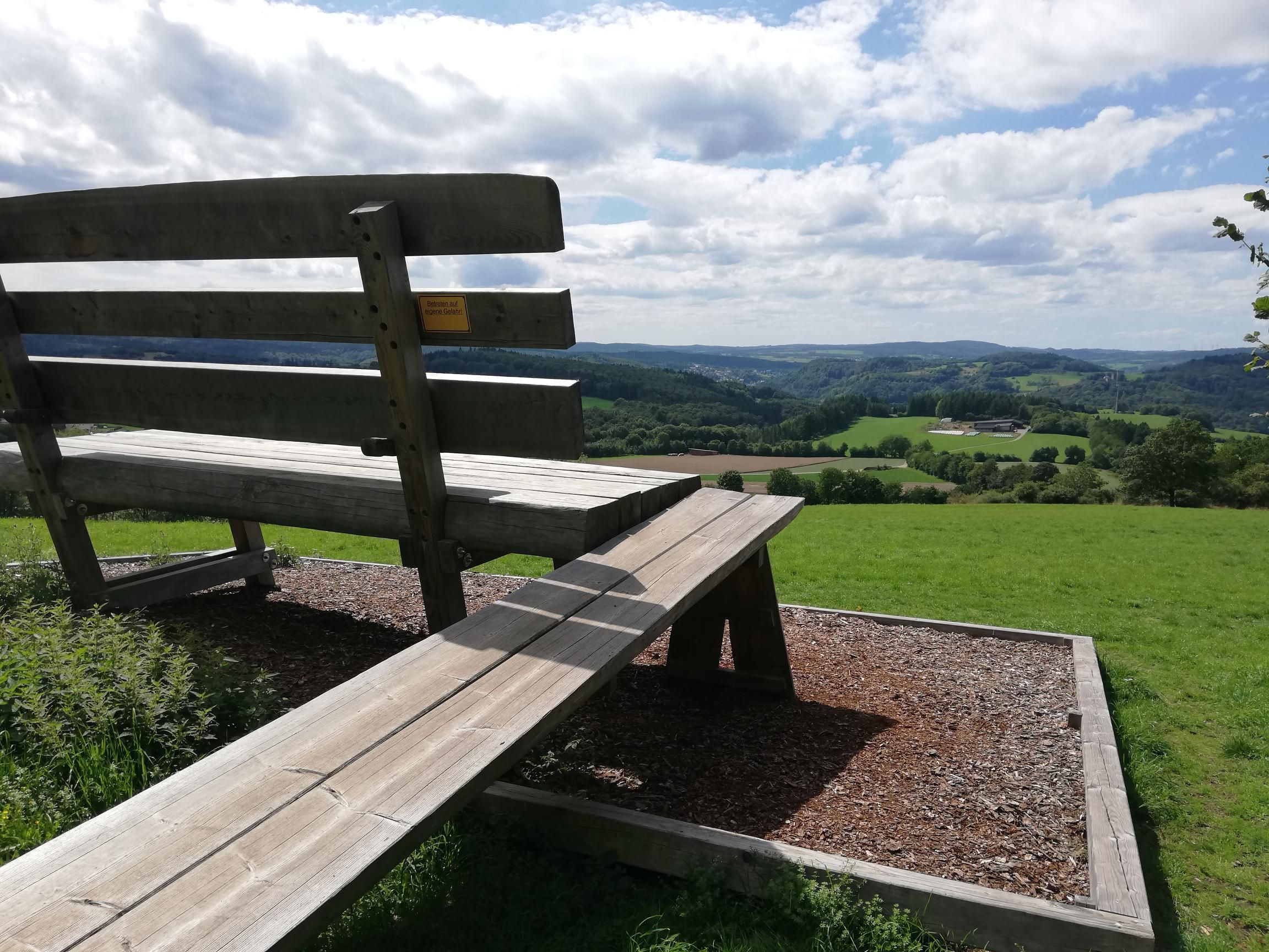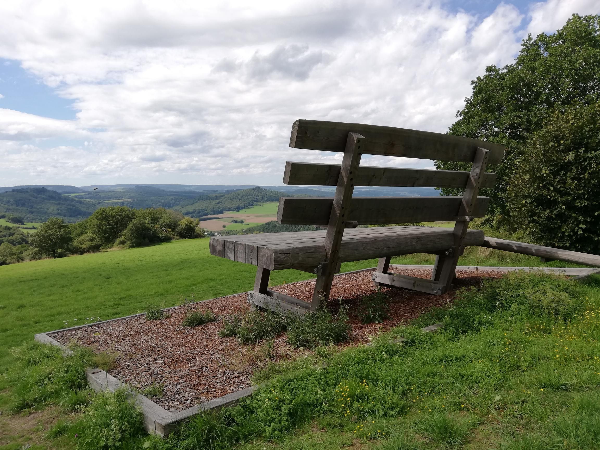 Die XXL Bank bei Berlingen bietet den Besuchern einen atemberaubenden Fernblick über die schöne Landschaft und die Kasselburg in Pelm.