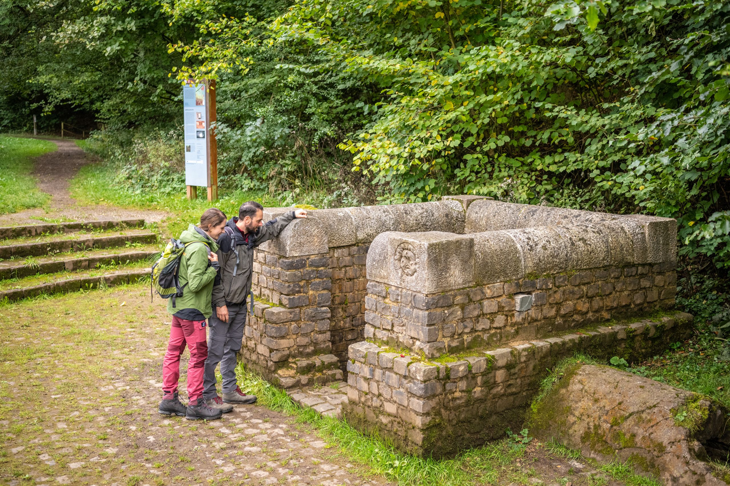 Auf dieser Eifelsteig-Etappe erlebst Du zurückliegende Zeiten, von den Römern bis zum Mittelalter. Start ist das mittelalterliche Kloster Steinfeld. Du lässt die Stille der Klostermauern hinter Dir und wanderst hinunter ins Tal des Gillesbaches. Der anschließende Anstieg auf den Königsberg belohnt Dich mit einer Aussicht auf die weithin sichtbaren Türme des zurückliegenden Klosters Steinfeld. Behütet von dichten Baumkronen wanderst Du weiter bis Du auf eine alte Bekannte triffst - jedenfalls wenn Du bereits Eifelsteig-Etappe 5 gewandert bist: Das Flüsschen Urft, das sich durch die Talauen schlängelt, begleitet Dich nun wieder eine ganze Weile. Doch die Urft ist nicht das einzige Wasser hier, denn bald erreichst Du eine auffällig eingefasste Quelle. Wasser ist der Ursprung des Lebens - schon die Römer wussten diesen besonderen Naturschatz zu schätzen und schützten ihn hier am Grünen Pütz. Um das kostbare Eifel-Wasser sicher nach Köln zu bringen bauten die Römer sogar eine eigene Leitung. Medusen bewachen zudem diese Quelle - doch gib acht! Denn der Legende nach darf man ihnen nicht in die Augen schauen, sonst versteinert man und zerfällt zu Staub.