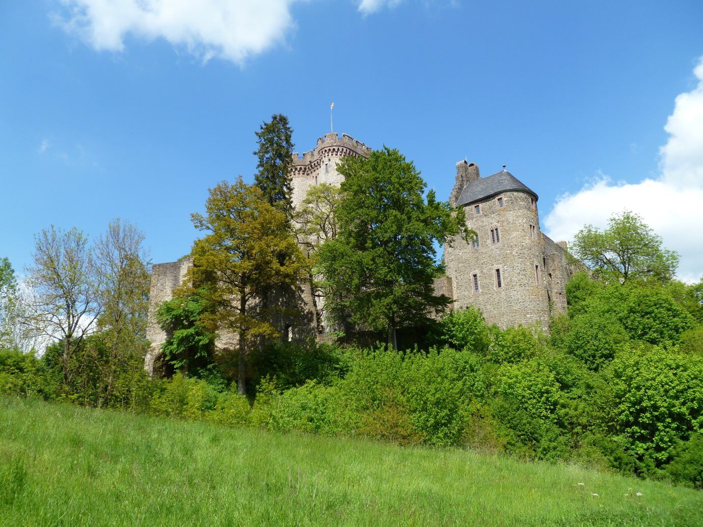 Der Weg führt schließlich vorbei an der Kasselburg. Rund um die Kasselburg befindet sich der Adler- und Wolfspark Kasselburg mit dem größten Wolfsrudel Westeuropas. Auf dem Rückweg passiert man den sogenannten Juddekirchhof. eine gallo-römische Kultstätte. Hier wurden die Göttin Caiva und die Muttergottheiten, im Eifeler Platt Jödde oder Jodde verehrt, woher auch der Name des Heiligtums stammt. Über die Hustley, einem beliebten Kletterfelsen leitet der Gerolsteiner Felsenpfad wieder zurück ins Kylltal.