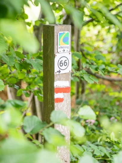 Der Eifelsteig ist als zertifizierter Premiumweg nach den Kriterien des Deutschen Wanderinstituts markiert und beschildert.