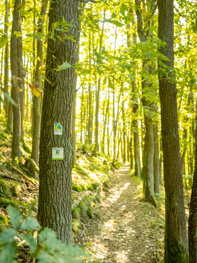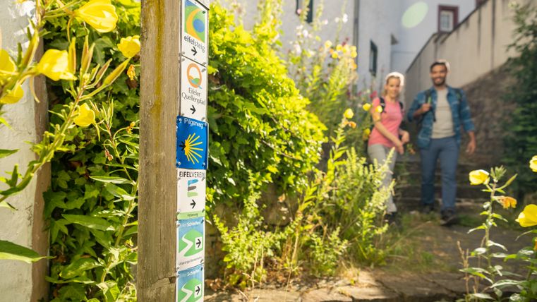 Das Eifelsteig-Logo weist auf dem gesamten Steig als Markierungszeichen den Weg.